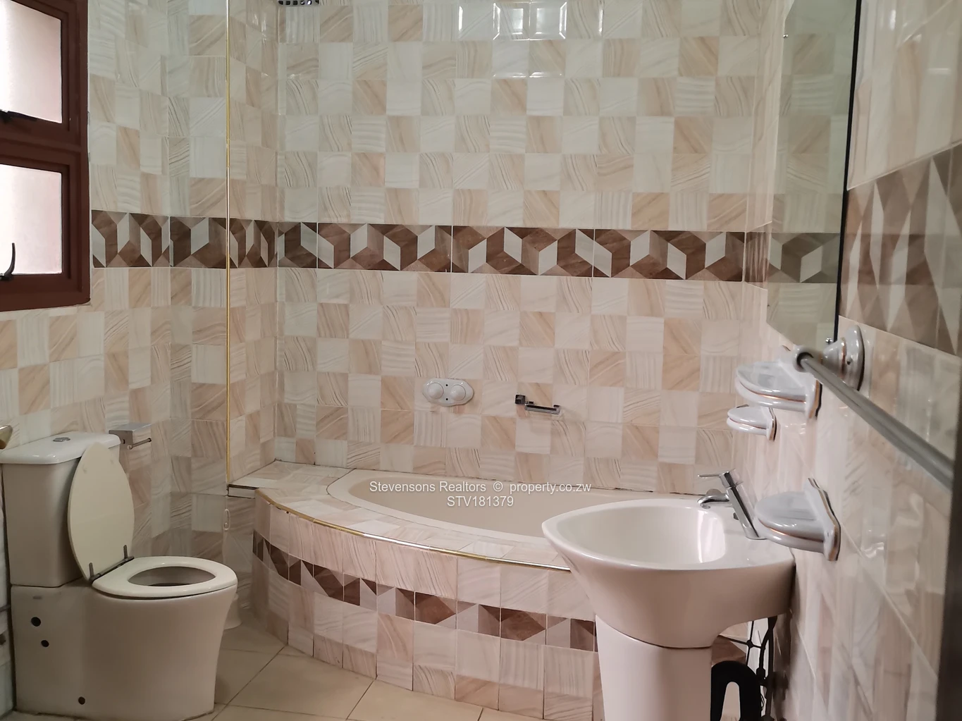 At the back of the house there is a beautiful entertainment place that overlooks the swimming pool, a braai area and a fireplace, spacious bar area, sunny lounge, gym room, separate toilet and bath, working Sauna. The house comes with a staff quarters that contains 2 rooms, combined bathroom and toilet, fitted kitchen with a fridge. Quard lock up garage, functional swimming pool, very beautiful garden, 2 solar geysers, prolific borehole with 2*5000L water tanks, generator, guard room. There are cameras around the whole house. It is walled and gated with an electric fence. Paved driveway.