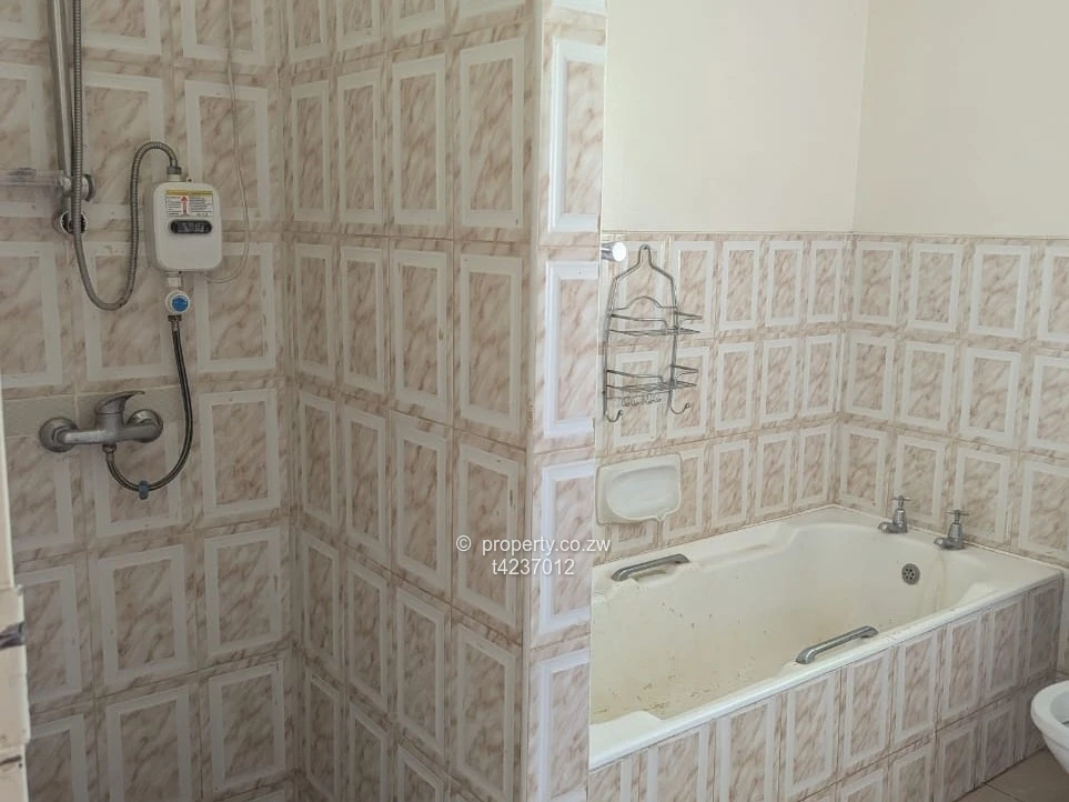 4 bedroom house to rent . Main bedroom ensuite.All bedrooms have built in cupboards. Spacious lounge and dinning room. Fitted kitchen and Scullery. Tiled and ceiling. Solar backup system, borehole water. 1 bedroom cottage and staff quarters. Well maintained yard . Walled and gated. For both commercial use and residential.