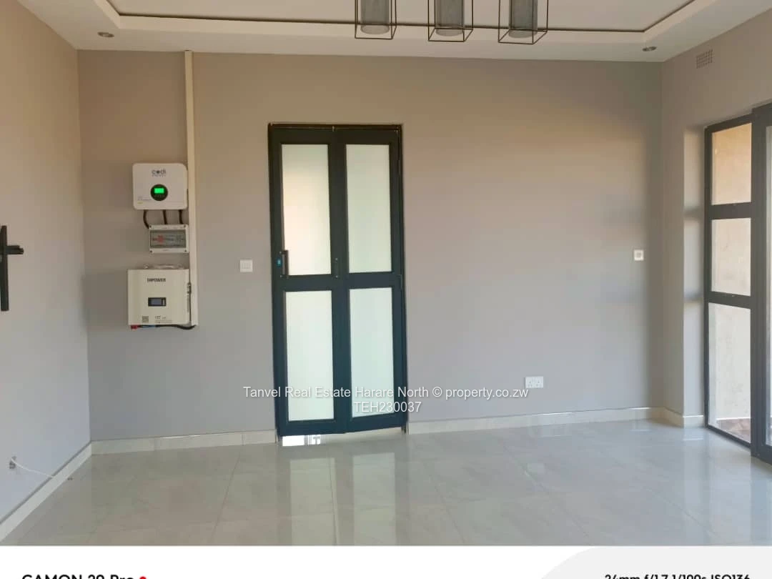Available for letting in Malbrough Sunset views is a modern 3bedroomed house with mes, fitted kitchen which comes with a stove(2 plates electric & 2 plates gas), lounge, borehole, solar backup, newly built, in a secure area with a, security boom gate.