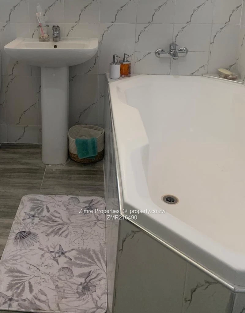 A cozy 3 Bed house with modern finishes available for 1 April, boasts of spacious lounge, tv room, dining, modern kitchen (comes with hob and oven), main en-suite with tub and a walk in dressing room, separate toilet and bathroom with shower. Well manicured garden, borehole, walled and gated. Carport and domestic quarters (one bedroom, kitchen and bathroom)