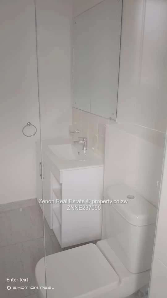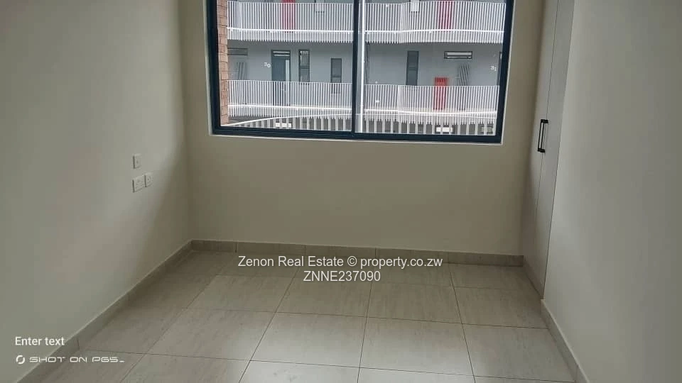 2 bedrooms, 2 bathrooms, fitted kitchen with gas stove and oven, balcony, metered borehole water and solar/Zesa power, controlled security.