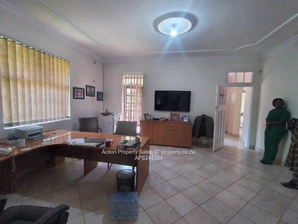 The property also has outbuildings that function as offices of various sizes. Good security with four walls, electric gate, paved driveway and lots of parking space. Lovely ambience with the swimming pool sent in a mature garden.