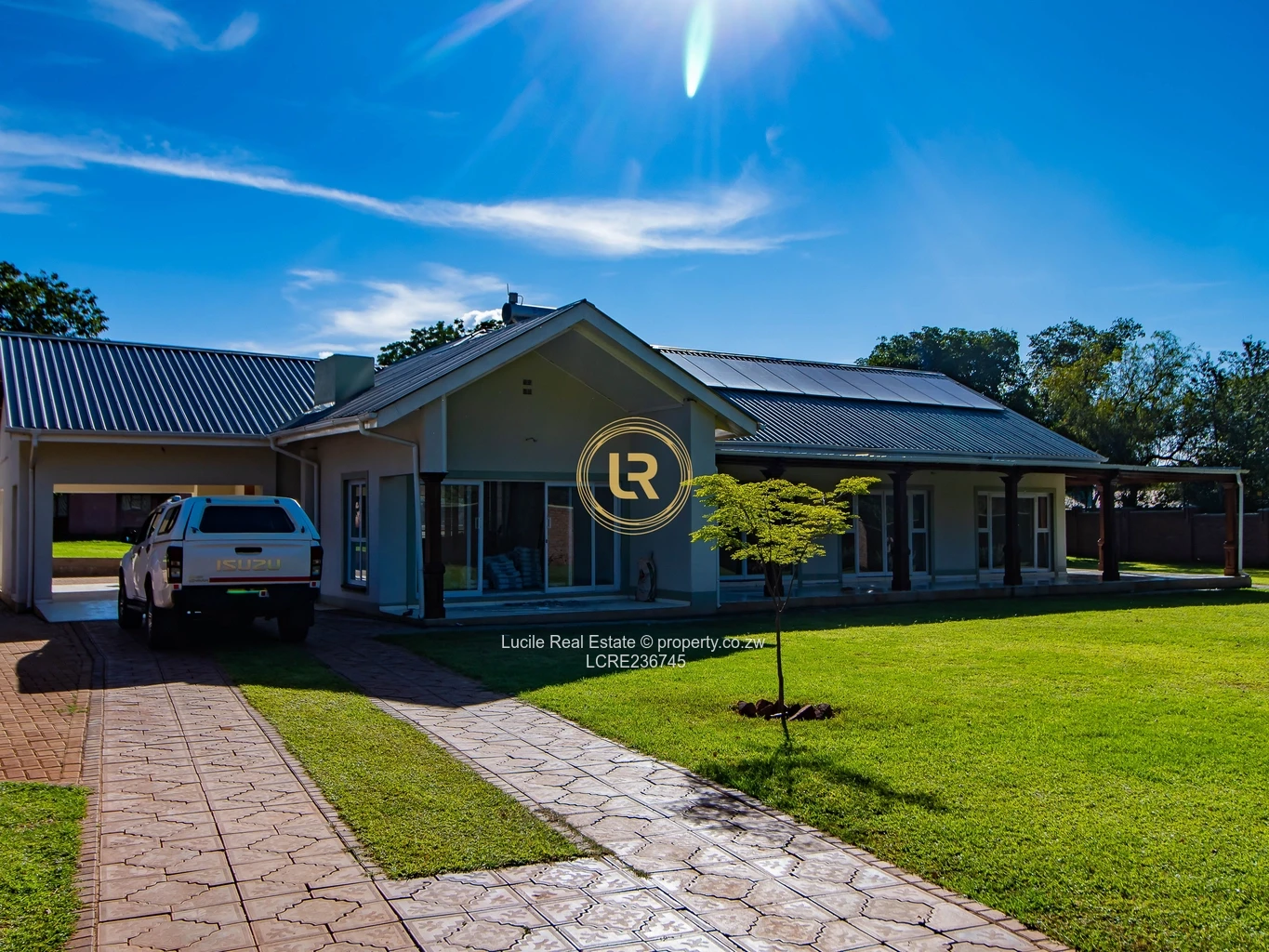 Additional features include a solar power system, a prolific borehole, and an electric fence, ensuring security and reliable utilities.