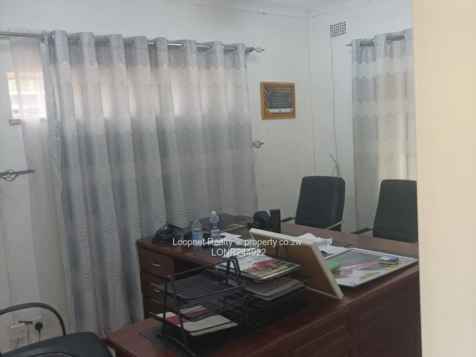 Two single-storey, self contained offices in Emerald Hill, Harare West — 200 m² of practical workspace ideal for a small professional team or satellite branch. The property is a solid red-brick bungalow set in a neat, paved and lawned yard (visible in the photos) with a clear vehicle approach and room for signage. Inside you’ll find several private rooms and a reception/administration area fitted with tiled floors, sheer curtains that admit soft natural light and create privacy, and ceiling heights that make the spaces feel airy. Practical fittings include an external air-conditioning unit and existing electrical/communications points ready for connectivity. Water security is excellent — the property benefits from its own borehole, reducing reliance on municipal supply. This comfortable, secure office offers a straightforward, turn-key base in a convenient Emerald Hill location (along The Chase, opposite Gateway Primary School) — perfect for legal, consulting, medical offices or administration. Rent-ready and available for viewing.