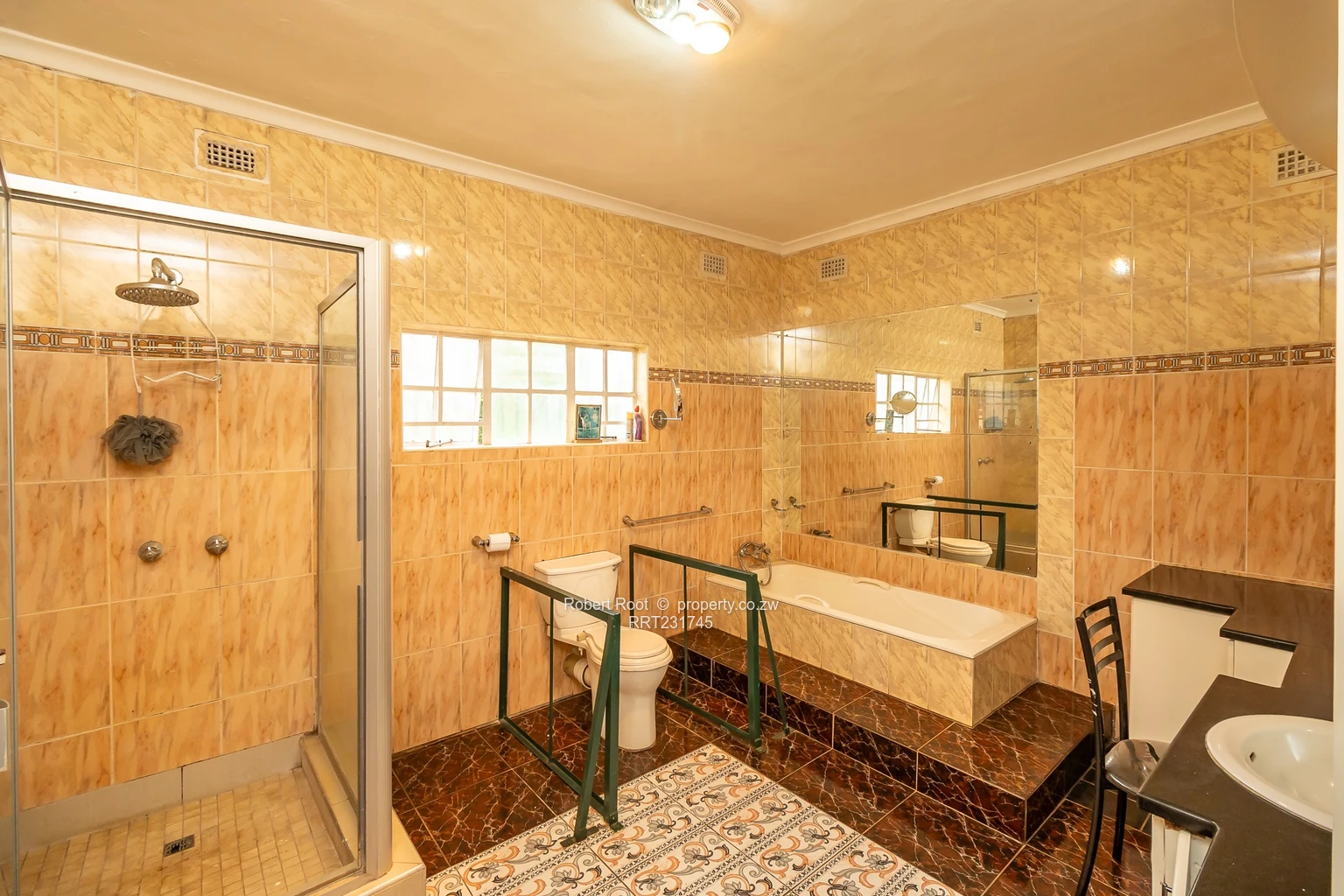 The kitchen is modern with plenty of cupboard space as well as a pantry for additional storage. The house has 2 bedrooms that come with ensuite bathrooms and three other bedrooms all with built in cupboards. There are 3 additional bathrooms for added convenience.