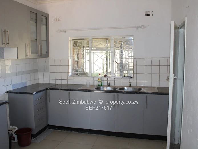 Available to rent near Pazindoga shops, in Waterfalls is this main house with five spacious offices, modern fitted kitchen with walk in pantry, three bathrooms, single lock up garage and ample parking space. The property is walled a gated for security. The cottage has tenants.