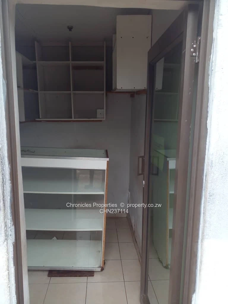 Available to let is a tuckshop with a private toilet in a business complex which is secured, has an activated alarm system, borehole, walled and gated.