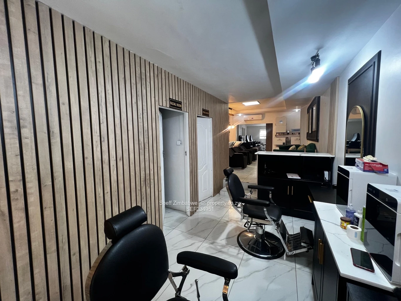 Move in and start earning immediately! This is a fully equipped, ready-to-operate commercial salon located in the high-traffic Newlands shopping. Complete salon area with chairs and stylish mirrors. Dedicated fully equipped spa/treatment room, modern wash basins with reliable water supply. Ample storage: Built-in shelves and high-quality fitted units, convenience: Bar fridge for staff/client refreshments. Comfort: Private changing rooms and separate client/staff toilets..