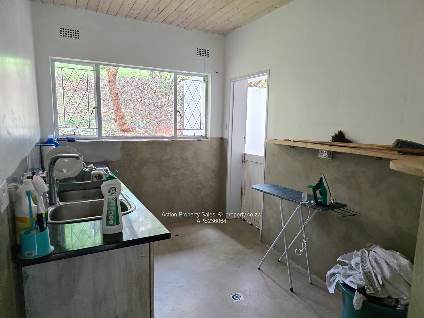 Outside is a beautiful covered veranda overlooking the private garden. There is a brick fire pit that adds a touch of warmth and is ideal for evening gatherings. In addition, there is the convenience of a double lock up garage and a double shaded carport. This property also has single staff quarters and a 5kva solar system and is supplied by a borehole.