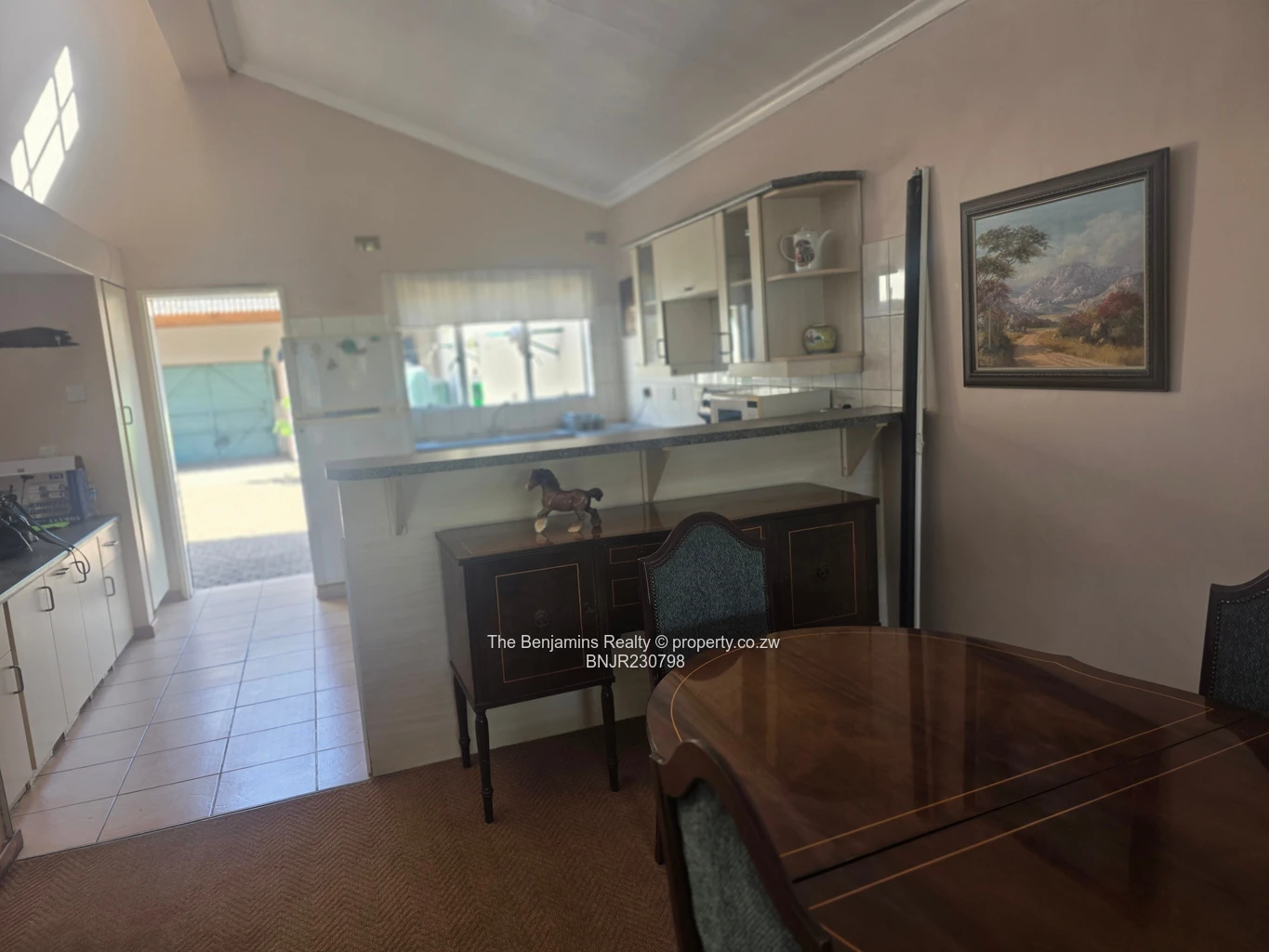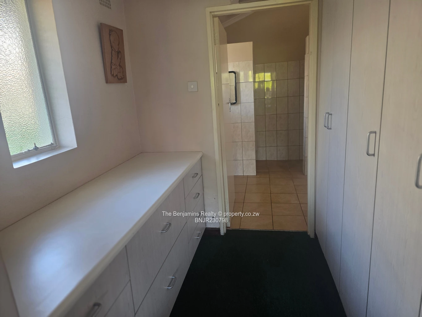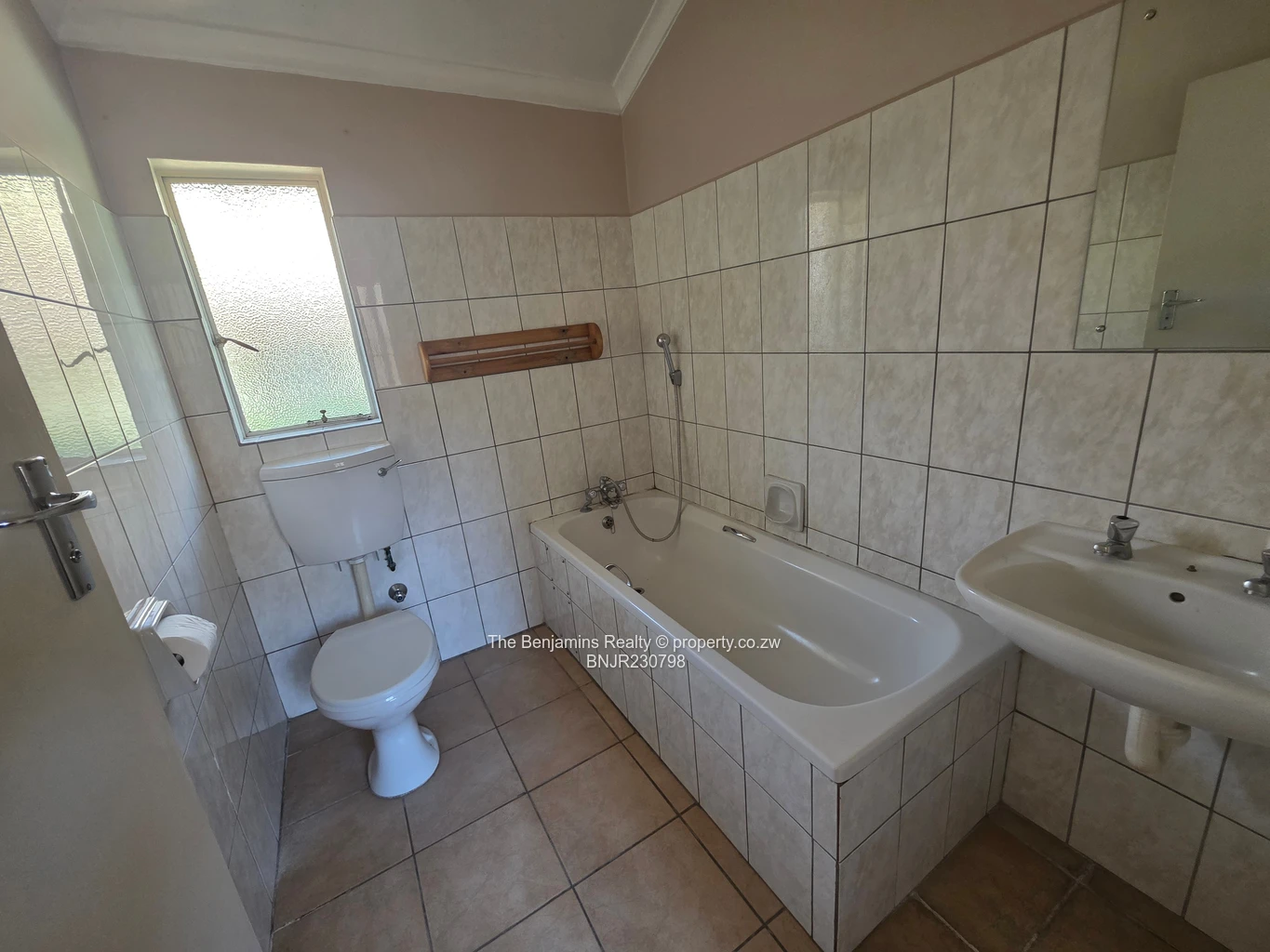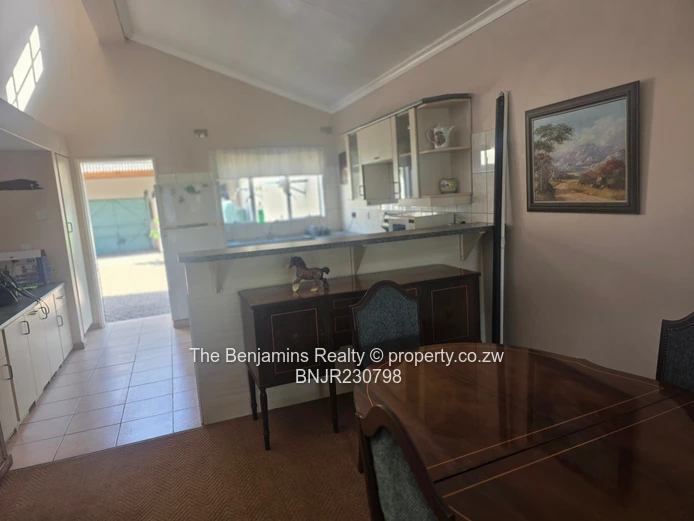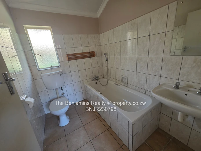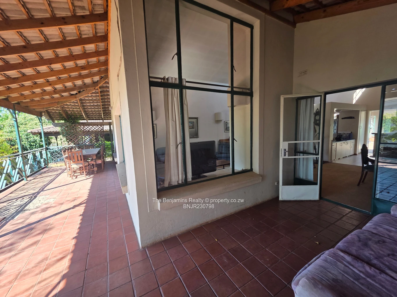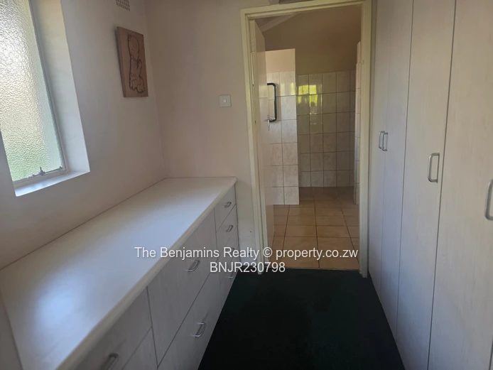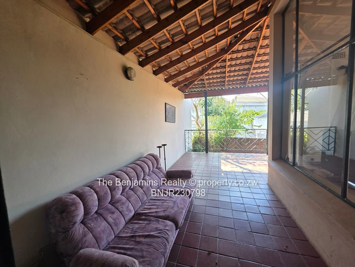 Rent yourself a life-style in the safe and secure golf estate at Borrowdale Brooke. Welcome to use the Club House. FURNISHED – a great lock up and go! Townhouse with three bedrooms. The main bedroom has a bathroom en suite, the second bedroom is serviced by the family bathroom. The third bedroom is outside attached to the house. Perfect as a Maid’s bedroom en suite or for guests. The kitchen flows is open plan into the dining room. The spacious lounge has a bar area. Doors open up onto a well sized undercover veranda. This area lends itself for easy entertaining. Outside the kitchen door is a courtyard. Lock up garage for two cars. Rental includes the levy. Security is simply fabulous. 24 hour guarded gate, electric fence. Borehole. The entire home is being re painted and tiled in the lounge area. Available immediately. No pets please