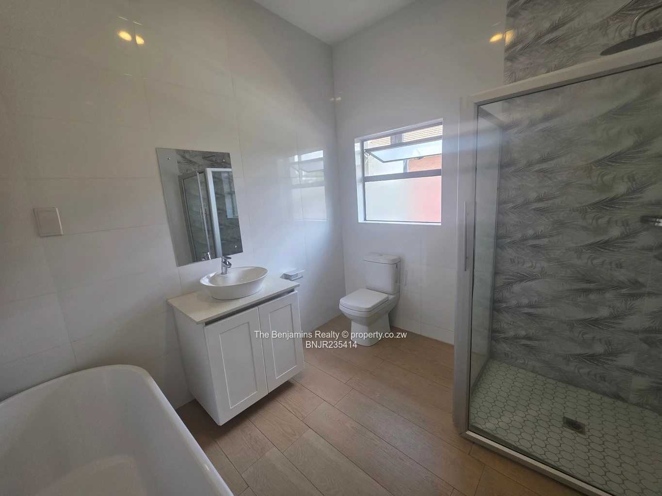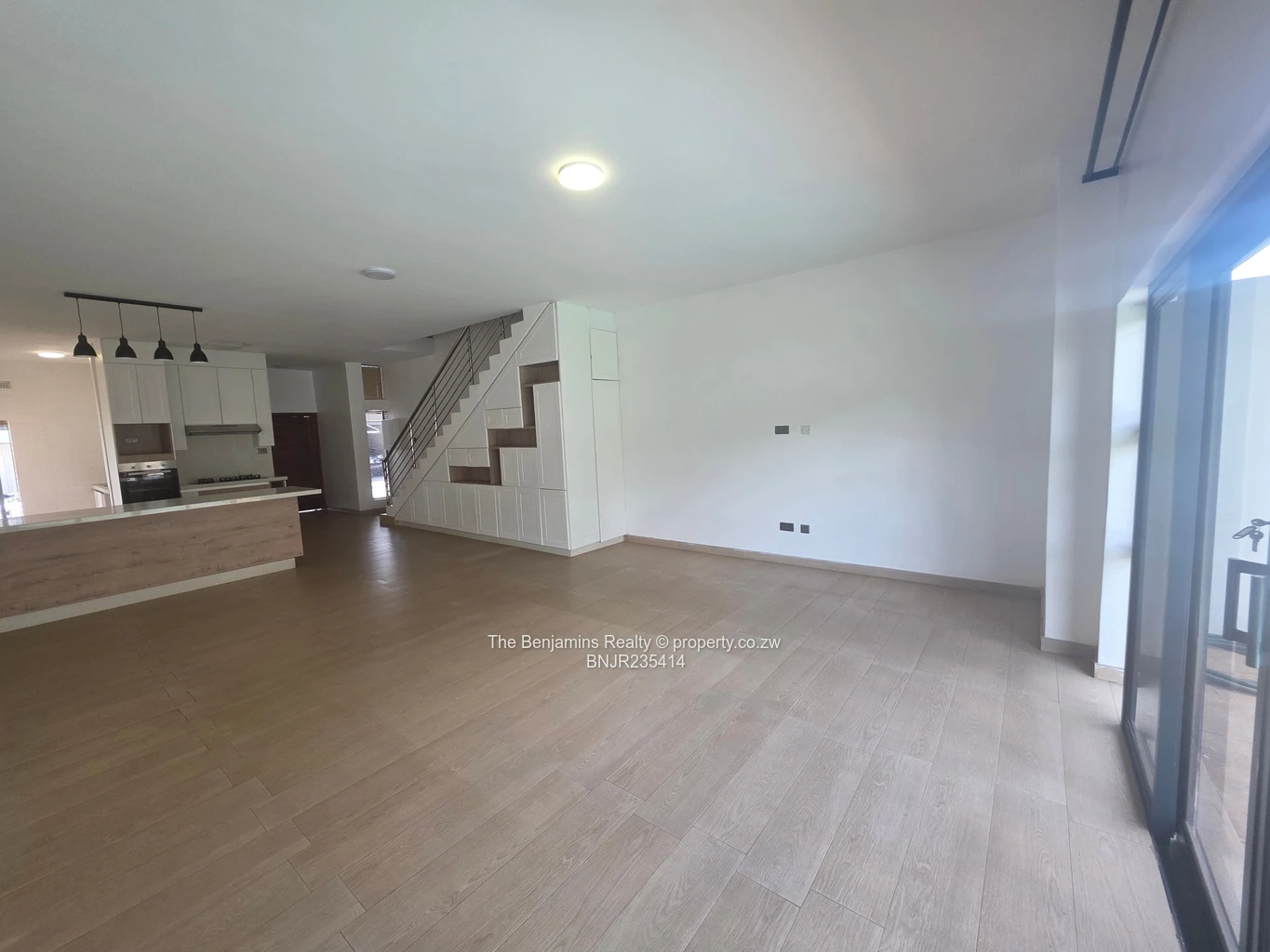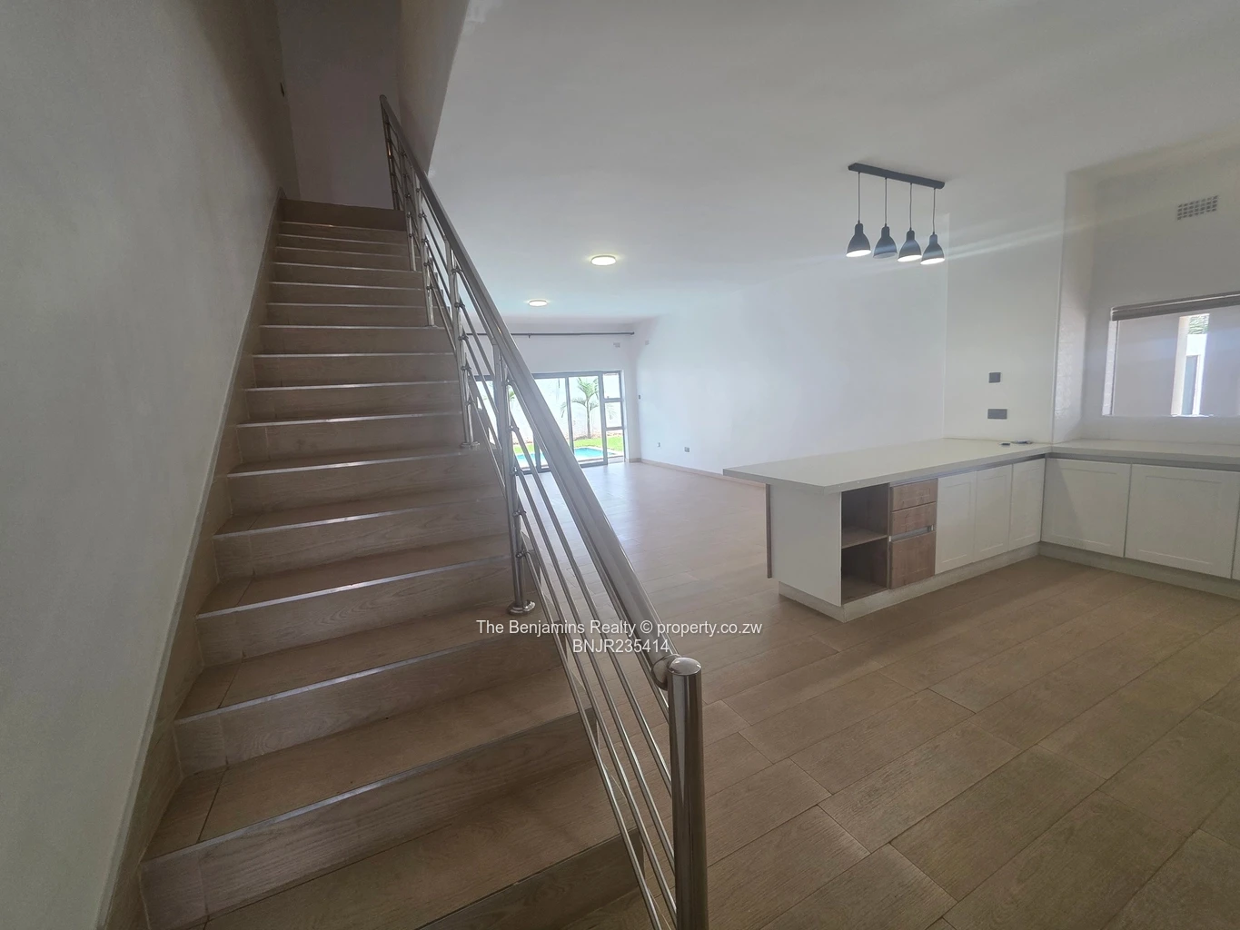CERES ROAD AVONDALE . A FABULOUS PAD TO LIVE IN. PROVIDING A LIFE-STYLE. FOUR BEDROOM TOWNHOUSE. This address is sought after. Close to many embassies and all amenities. Please note the townhouse is NOT furnished. Duplex townhouse has four bedrooms. High ceilings- Lounge/dining area with open plan kitchen with a scullery area. Doors open from lounge into a garden with a private pool. Sweep upstairs. passage is wide to allow a work station. there are three bedrooms ,and two bathrooms. the main bedroom has an en -suite bathroom. There is a walk in closet, a small balcony and doors on the other side of the room opening up onto another veranda area. The family bathroom services the other two bedrooms of which both have access to the veranda. Good storage space. A separate entrance downstairs leads into the fourth bedroom and bathroom. ideal for a staff member or guest bedroom. Undercover garage, Communal entertainment for your use housing a gym and indoor swimming pool. Security is excellent. The complex is OFF THE GRID. 180ka inverter, boreholes, back up water tanks. Geysers use solar or gas, cooker uses gas. High fibre Zol connected. 24 hour security. Gate for entry into complex, then to get access into your townhouse area there is another gate with private access. Eight strand electric fence, outstanding lighting CCTV. . No pets please