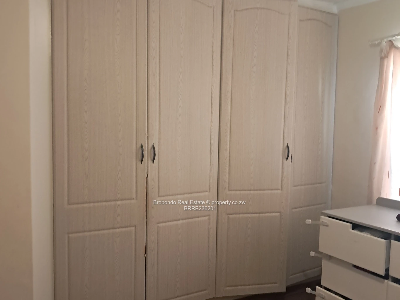 Westgate Acacia gardens cluster home is this solid 3 bedroomed house comprises of open plan lounge cum dining and fitted kitchen, scullery, tiled floors, ceiling. All bedrooms come with built in fitted cupboards and wall to wall floor carpet, main ensuite, family bathroom and a toilet. The property has a veranda, garden area, laundry room, 5000l water tank sitting on a tank stand connected to a borehole shared on 2 units only, single lock-up garage, zesa connected. The complex is well secured and managed with only 18units, additional communal borehole. Monthly levy of US$60.