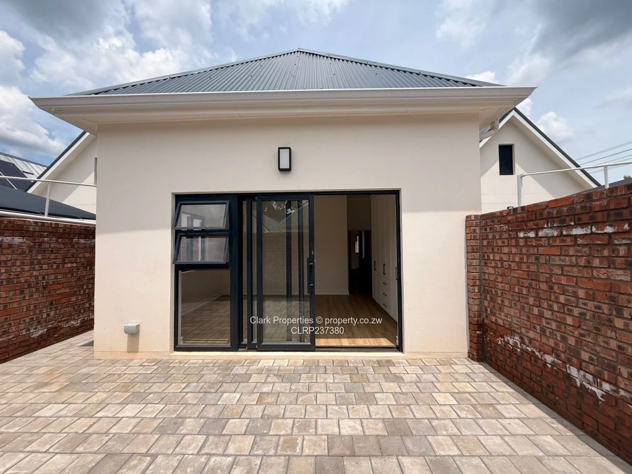 Clark Properties is delighted to present this spacious home with an open-plan lounge, dining and kitchen area providing a contemporary living. High ceilings enhancing natural light and space. The kitchen comes fitted with a 5-plate gas stove and oven, complemented by a scullery and walk-in pantry perfect for everyday convenience. Large doors open out to a private courtyard, creating a seamless flow between indoor and outdoor spaces.