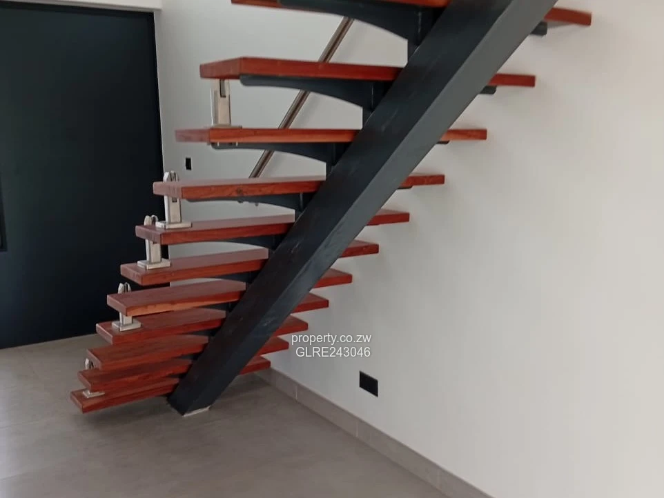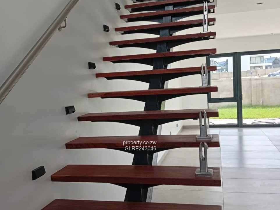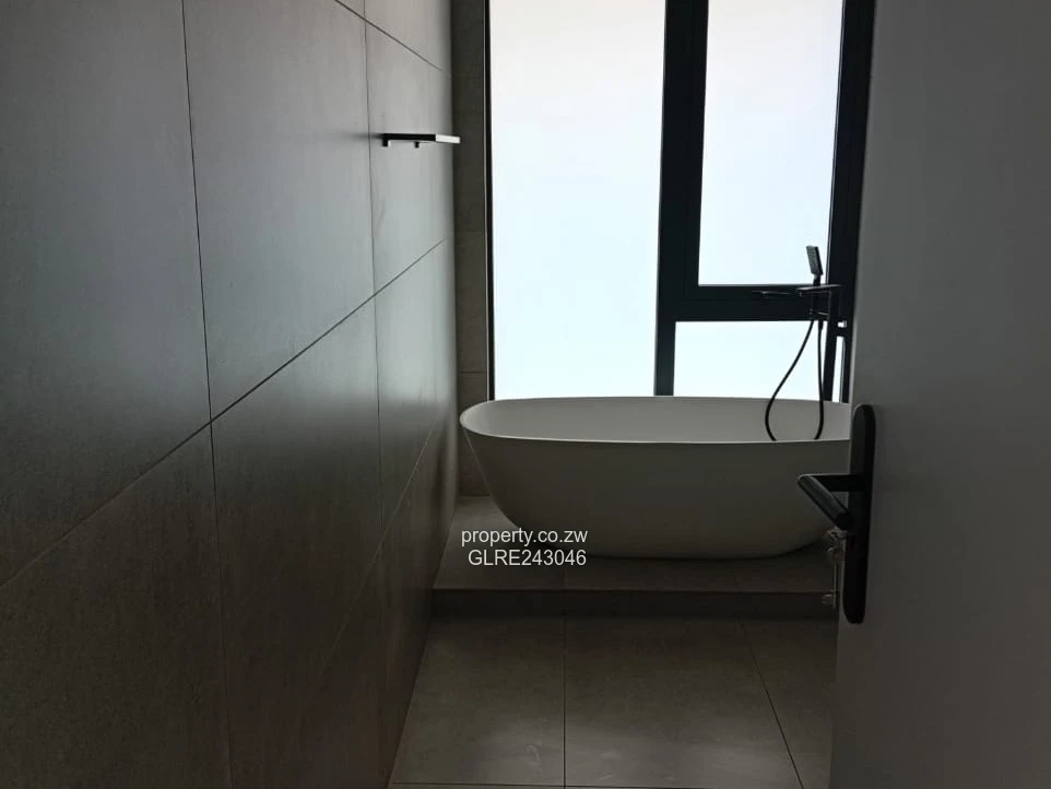 Stunning modern townhouse in an exclusive Borrowdale complex — perfect for families or professionals seeking style, space and reliability. This spacious 4-bedroom, 3-bath home sits on a 700 m² stand with 500 m² of elegant living space. As seen in the photos, the exterior features crisp white façades, striking pitched roofs and large triangular windows that flood interiors with natural light. The home offers tiled floors, built-in wardrobes in the bedrooms, a contemporary family bathroom with freestanding bath and separate glass shower, plus en-suite convenience. A covered single carport and paved driveways lead into a tidy, low-maintenance lawn setting within a secure, well-laid complex. Reliable water is assured by an on-site borehole — a major advantage in Harare North. Finished to a high standard with clean lines and practical layout, this townhouse combines modern design with everyday functionality in the heart of Borrowdale. Viewing by appointment.