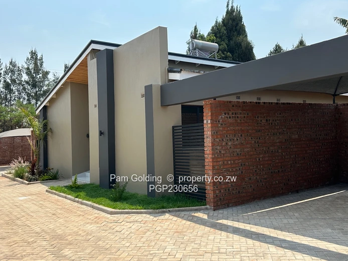 Additional features include a covered carport, back-up solar power, a borehole, and security.