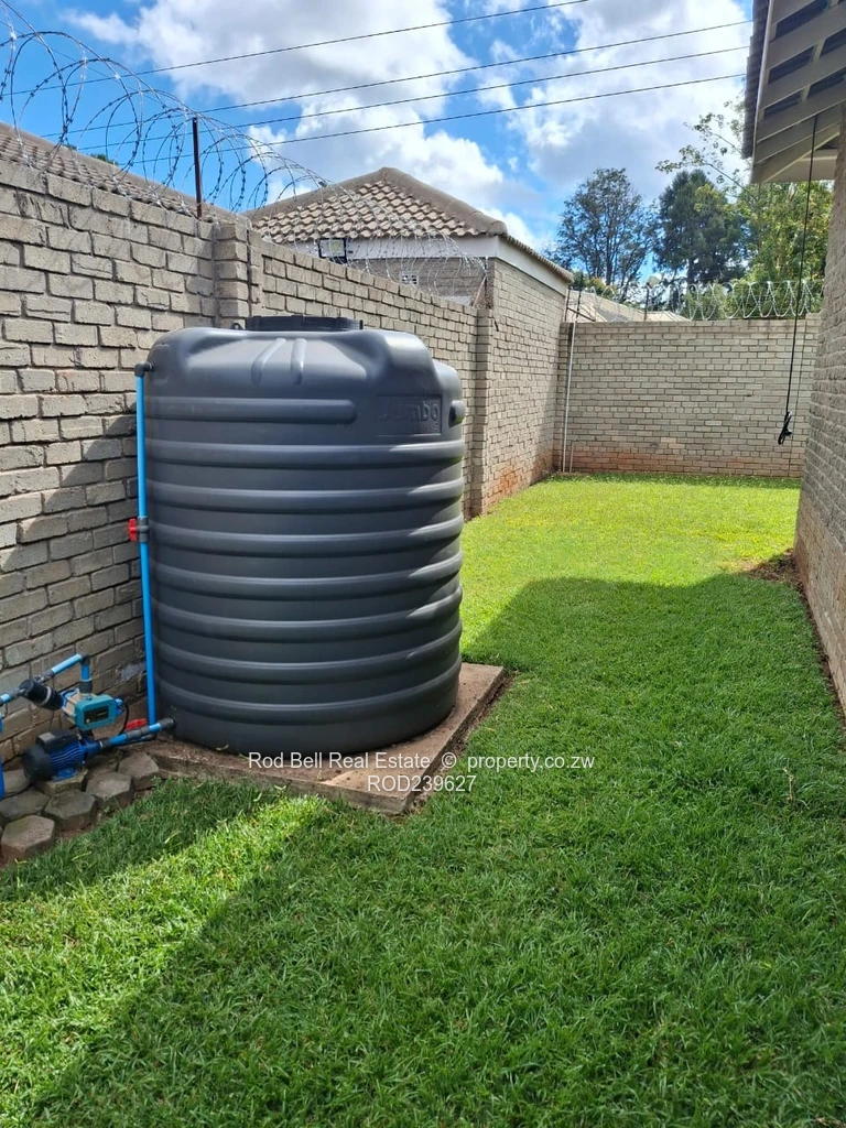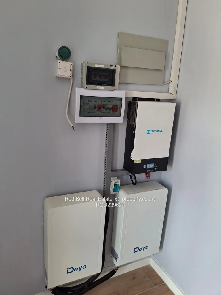 This neat 2-bedroom townhouse comprises of 2 bathrooms, 1 ensuite, open plan lounge / dining room, fitted kitchen. The lounge leads out in a private, walled garden with a water tank. The property comprises of a solar geyser and solar system and a single shade port. The whole complex is walled with electric fencing and electric gate. There is a communal borehole. The levy is included in the rent.