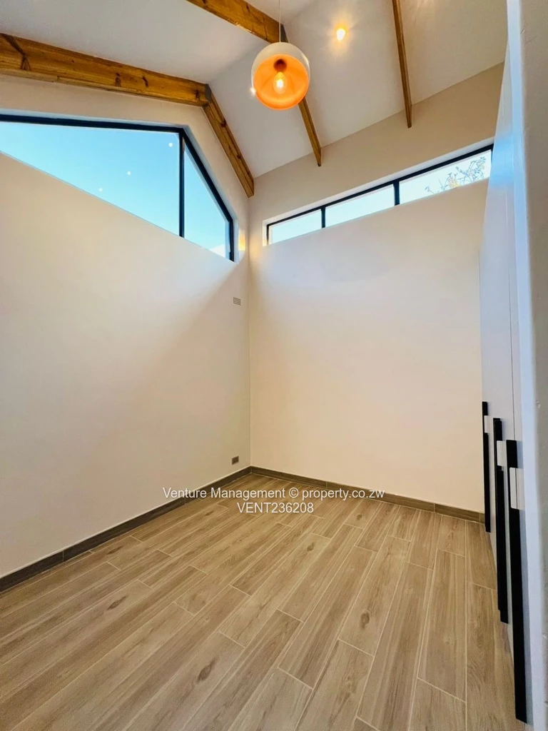Situated in the peaceful Highlands suburb of Harare, this modern 2-bedroom townhouse combines comfort with upscale living. The stylish design features a striking wooden entrance and a palette of soft neutrals, enhanced with traditional touches to create a welcoming feel.