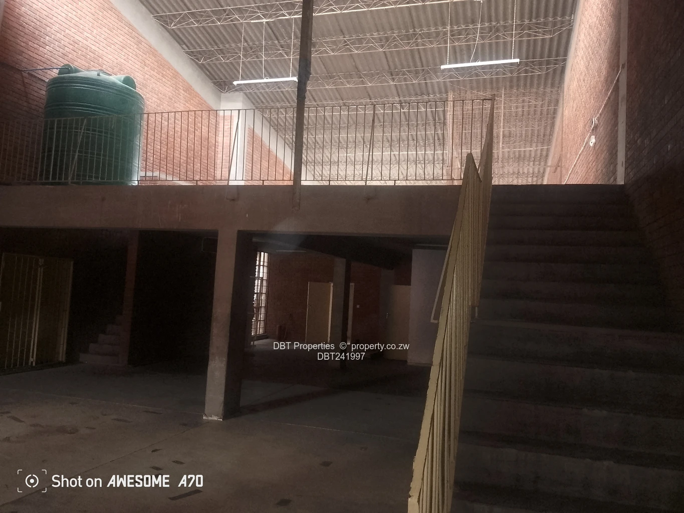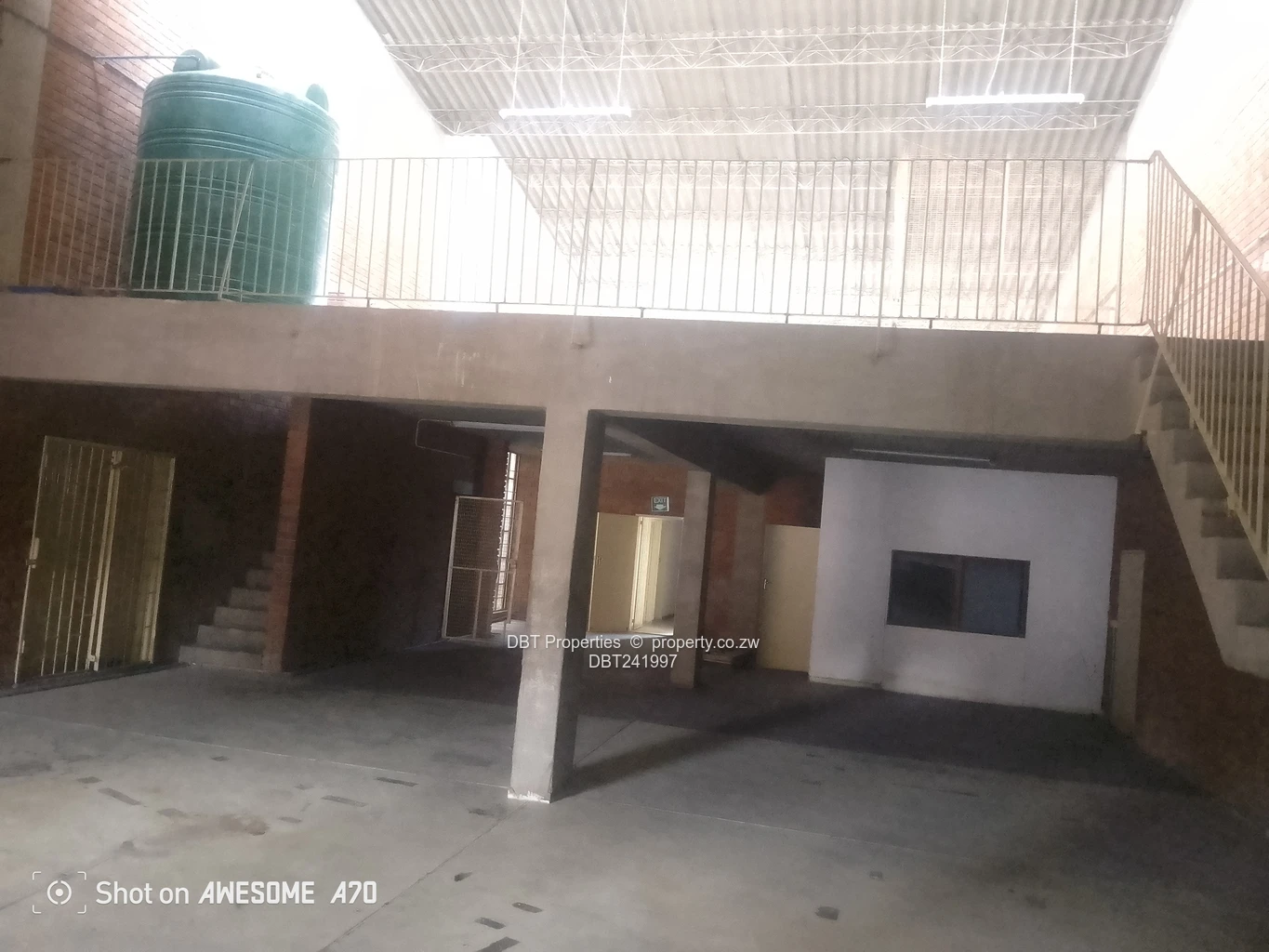 Spacious 577.00 m² warehouse & factory for rent in Msasa, Harare East — ideal for light manufacturing, storage or distribution. Solid red-brick two-storey building with a secure paved forecourt and easy truck access. As seen in the photos, the ground floor offers a wide open workshop with concrete flooring, exposed support columns, high industrial windows that admit generous natural light and a large loading entrance. Upstairs features fitted office rooms with tiled floors and wood-panelled partitions ready for administrative use or conversion.