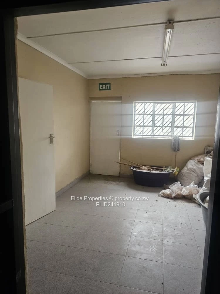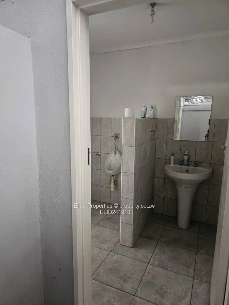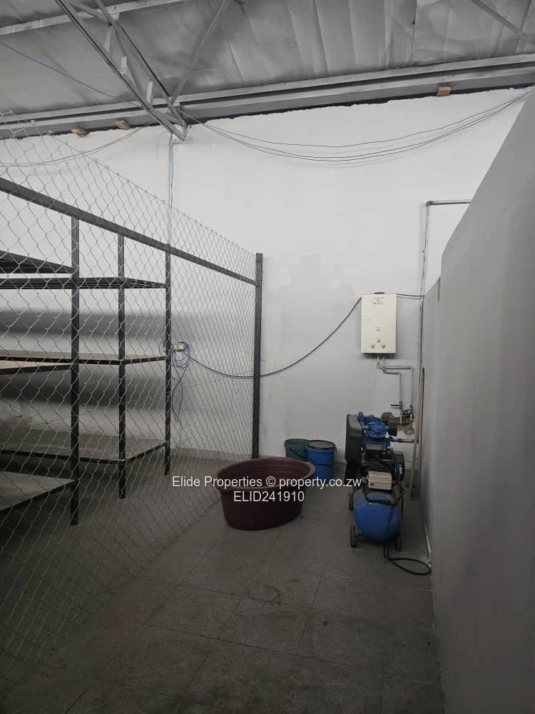 Spacious 350 m² warehouse/factory for rent on a 450 m² stand in sought-after Msasa, Harare East — ideal for light manufacturing, distribution, e-commerce fulfilment or secure storage. The unit features a high metal roofline and wide roller shutter entrance (photo) for easy loading and vehicle access, a solid concrete floor and built-in shelving with chain-link caged storage for organised inventory (photo). Staff amenities include tiled, fully plumbed bathrooms with pedestal basins, toilet and urinal, tiled half-walls and mirrors (photos) — clean and practical for workforce use. Fire safety equipment is installed, including a wall-mounted hose reel as shown. Bright interior with ventilation and windows providing natural light; secure perimeter and gated access make this space suitable for businesses requiring reliable security and immediate occupation. Convenient Msasa location offers quick access to Harare East arterial routes, suppliers and labour. Viewing by appointment — contact us to arrange a site inspection and discuss lease terms.