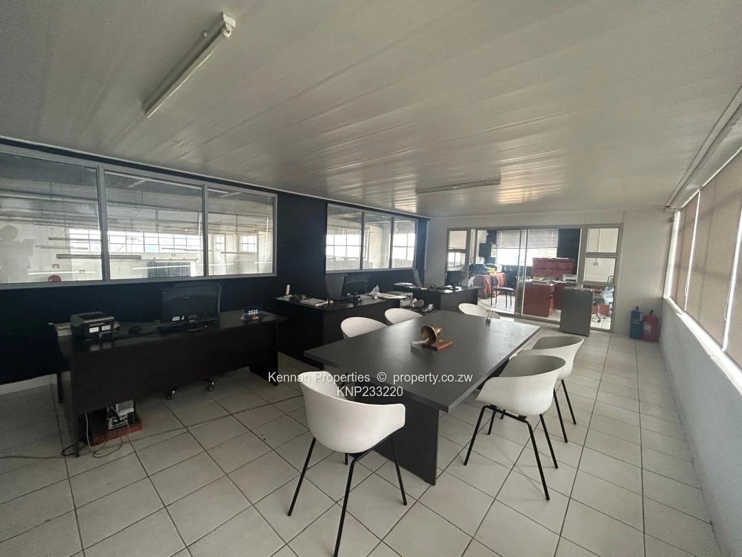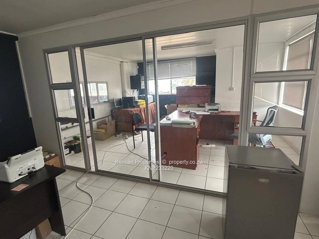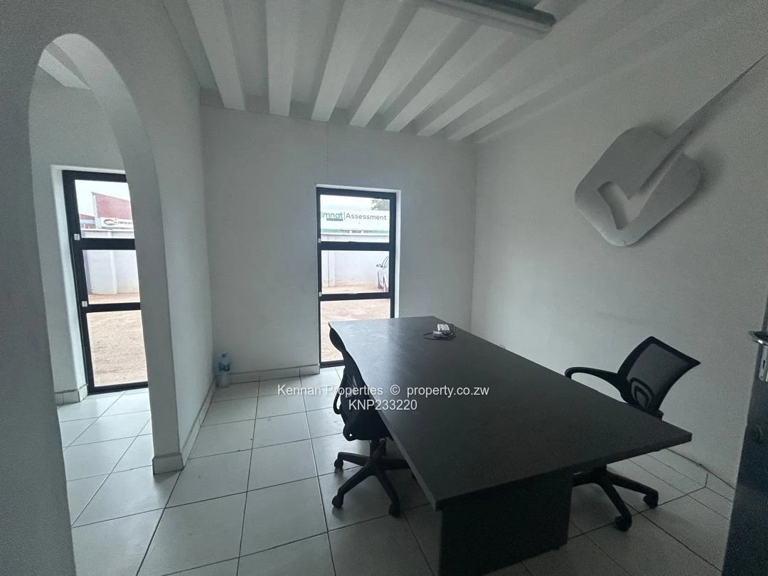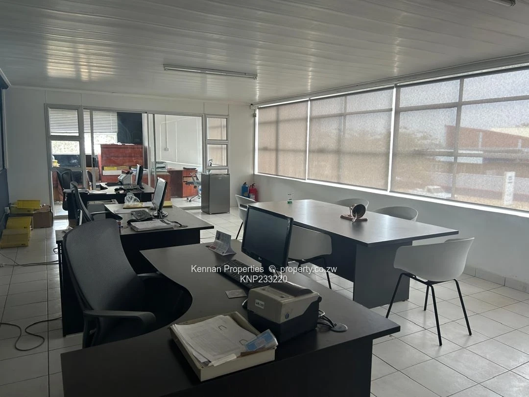Mezzanine floor offers a large open plan office with space for 4-5 large desks and a separate partitioned private office space.