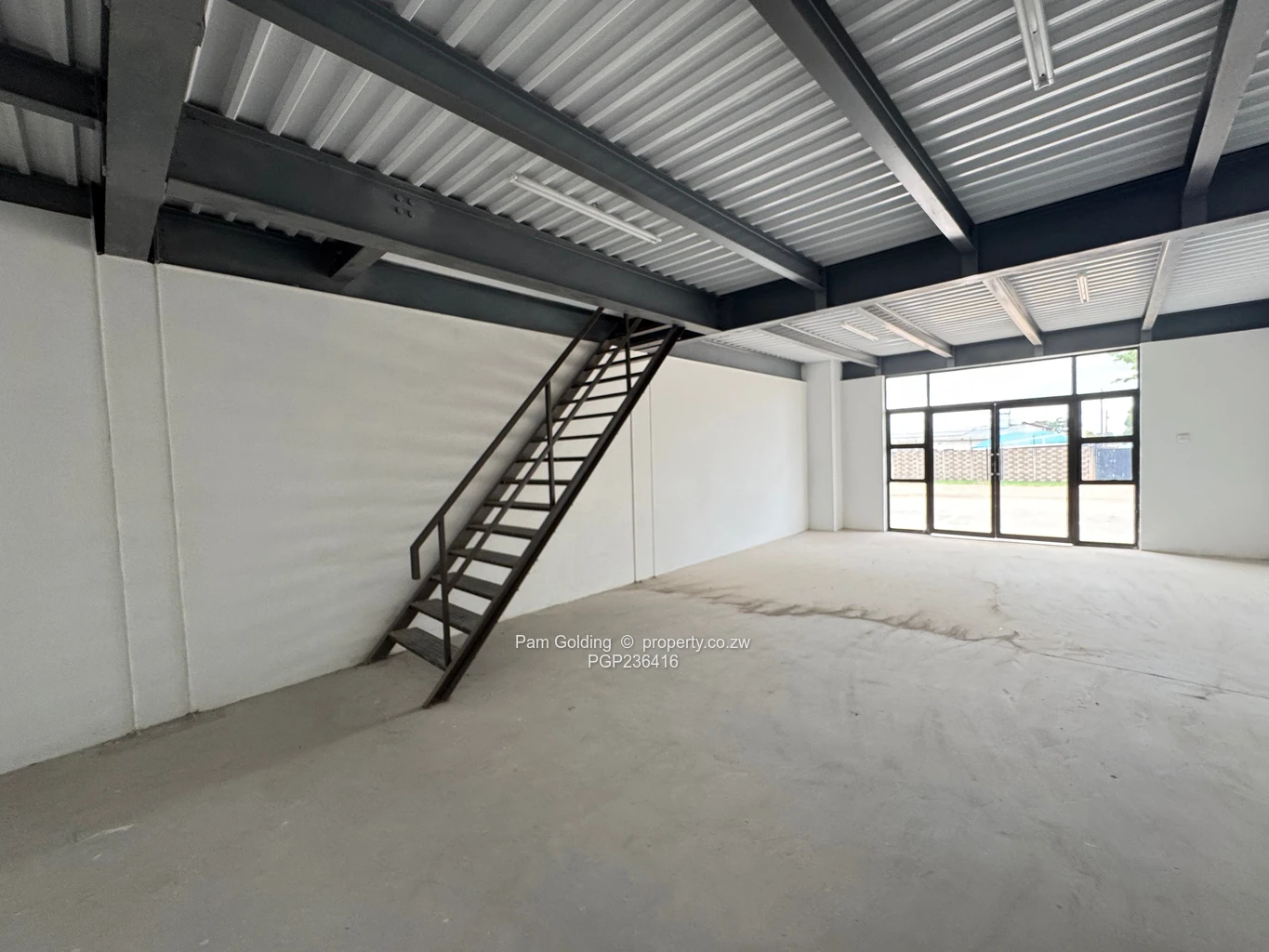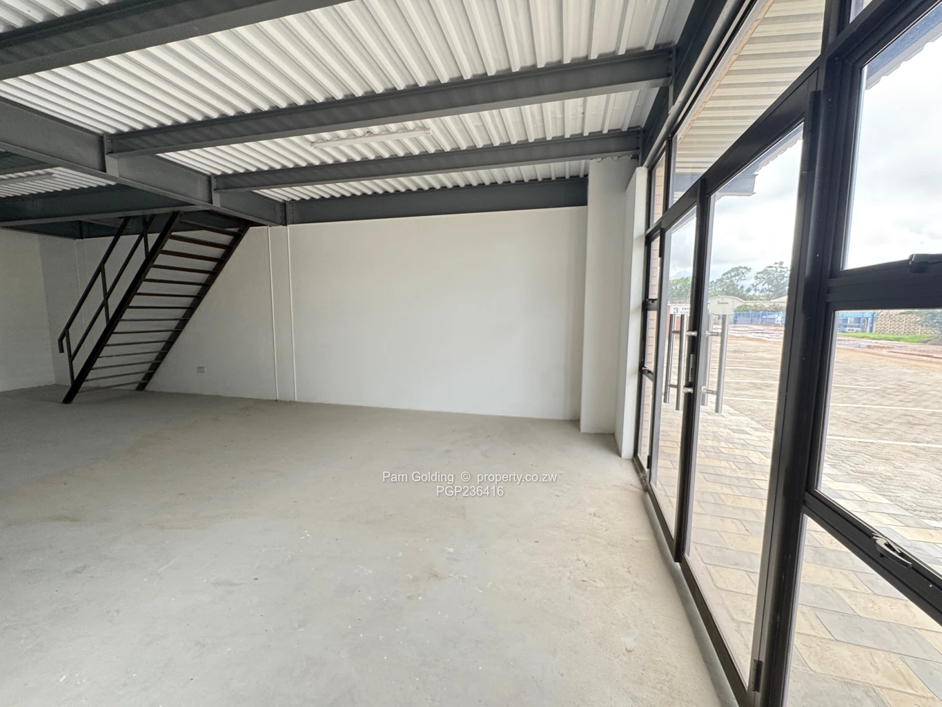 Newly built retail units available for rent in Msasa. Each unit comprises a ground-floor storefront measuring 55 sqm, with a 55 sqm mezzanine floor suitable for offices or additional storage, and includes a private toilet.