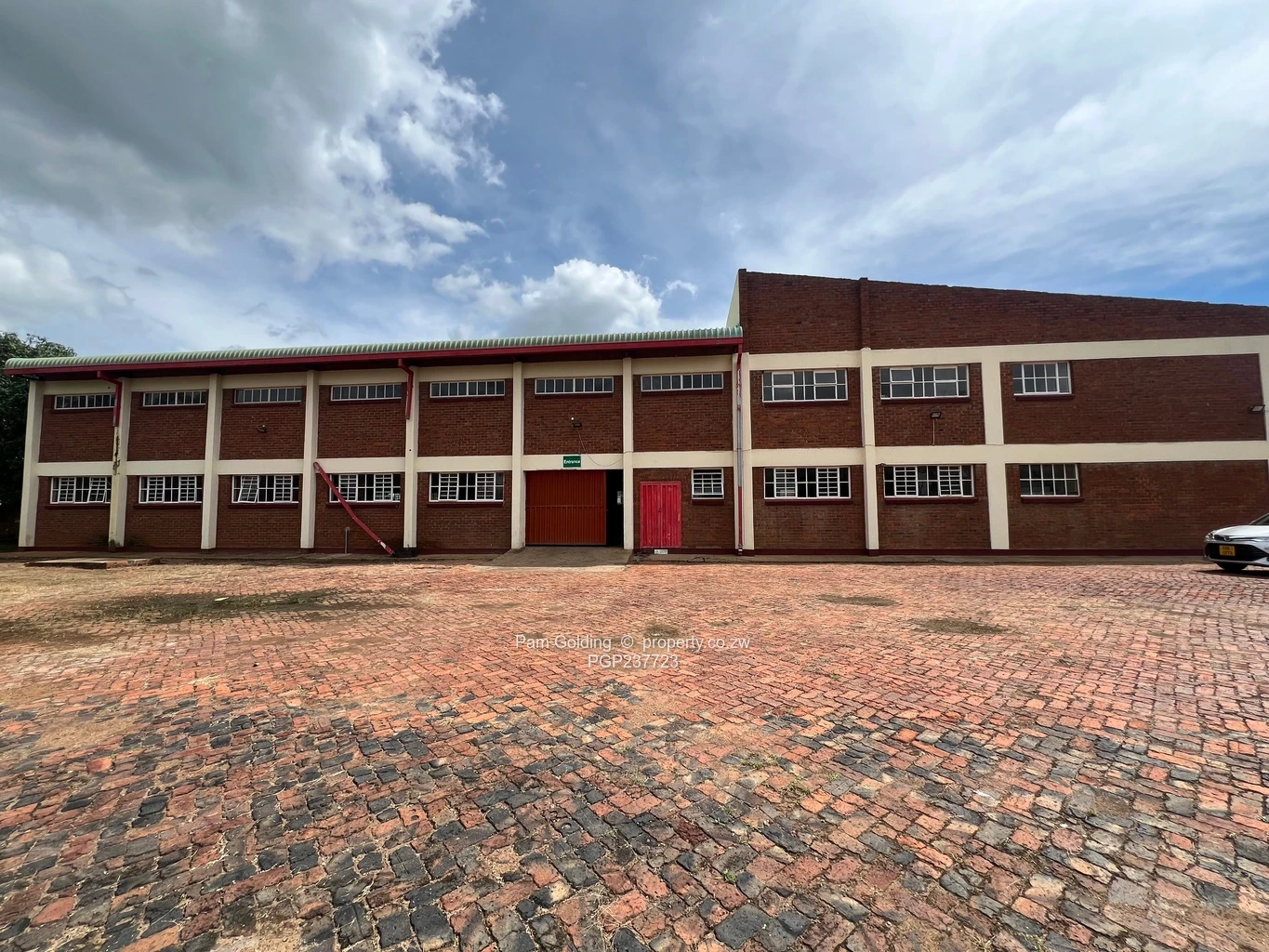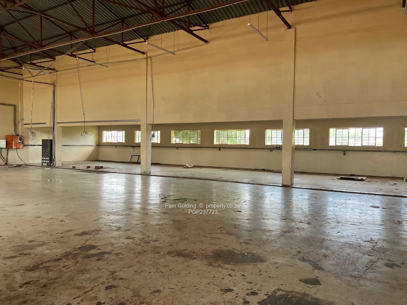 The property includes nine offices, six toilets, and practical amenities such as a borehole and a water tank, making it suitable for various industrial needs. The facility is well-secured with a wall and fencing.