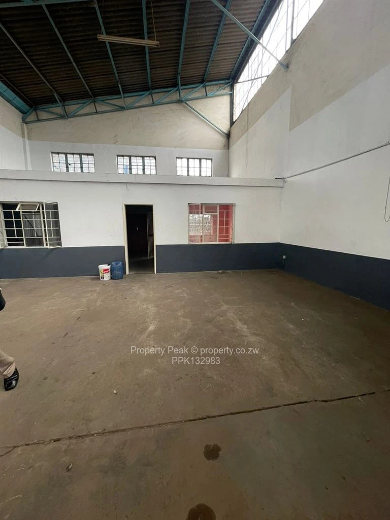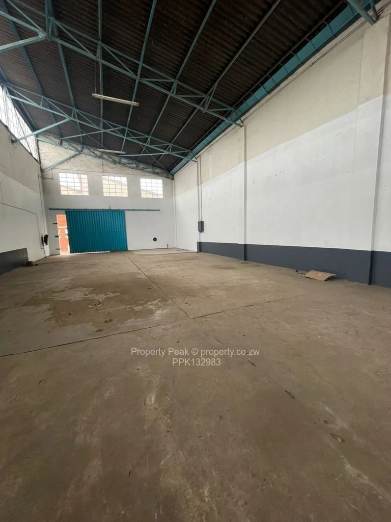 Well-appointed warehouse/factory for rent in Workington, Harare South — 1,000 m² stand with a 300 m² covered production/ storage building. The main workshop is bright and spacious with high ceilings, durable concrete floor and a large roller shutter entrance ideal for forklifts and truck access (see photos). Clerestory windows provide natural light across the open bay while robust painted walls offer a clean, low-maintenance finish.