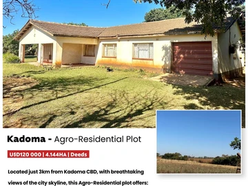 On offer for sale are several titked plots located approximately 17km north of Kadoma City Centre. These plots are subdivisions of a big titled farm. Their sizes are around 50 ha and have mostly sandy loam soils though some have some black soils. Water will be by way of boreholes and the water table is good. Electricity is within the main farm.
