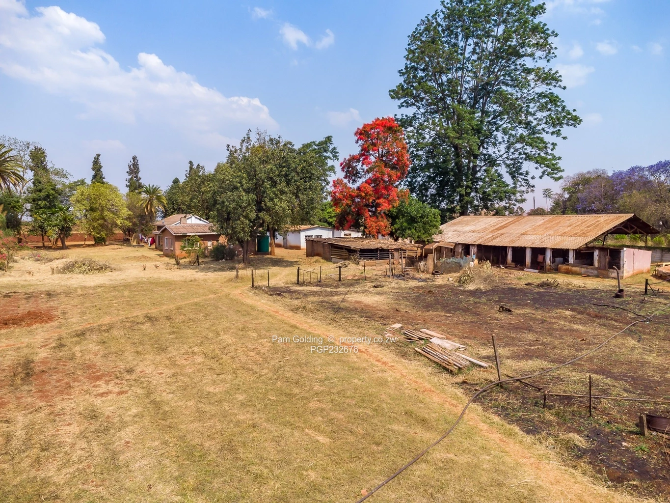 Prime land with a commercial borehole and a three hundred thousand litre reservoir, along Domboshava Road, Situated directly opposite Northgate Estates. It's currently zoned as Agro-residential. This plot has a 3-bed farmhouse, a tractor shade, a workshop a perimeter fence and has a functional irrigation system.