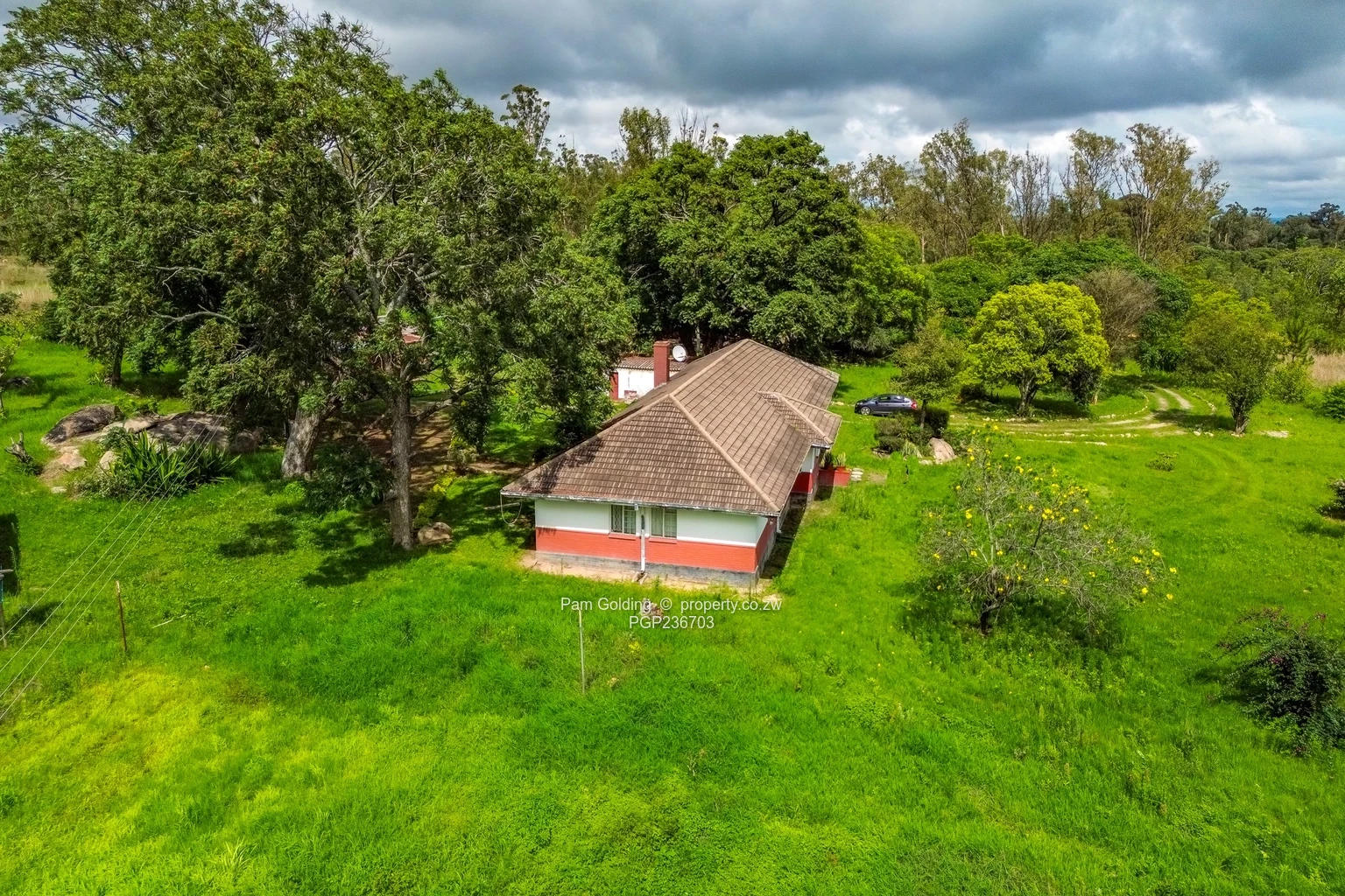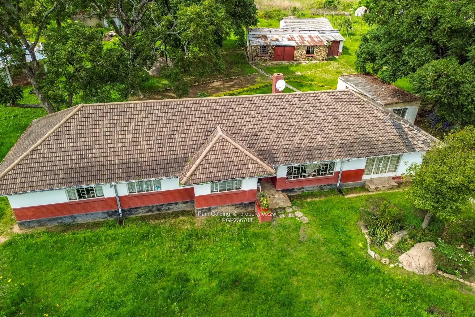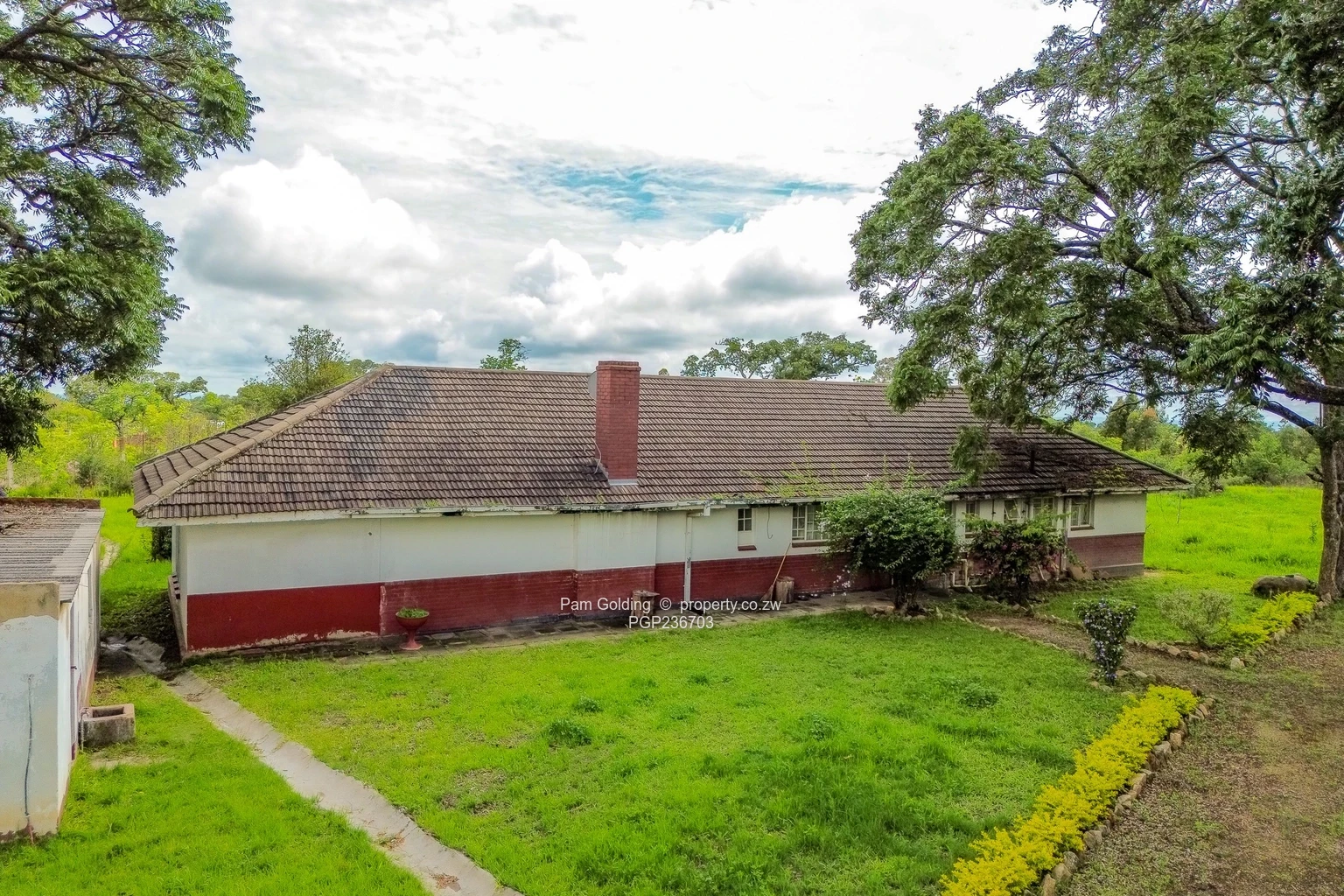 The land is well serviced with a reliable water supply and dependable ZESA electricity. The main residence comprises three bedrooms and two bathrooms, including a main en-suite. It also features a kitchen, a lounge, a separate dining room, and an additional lounge area.