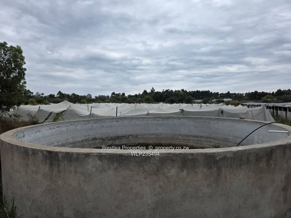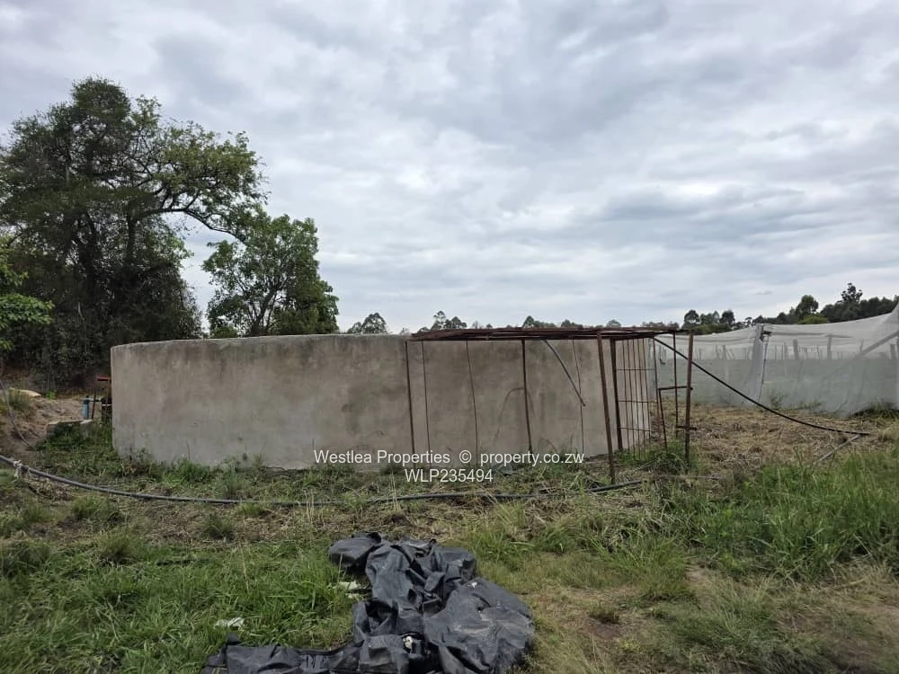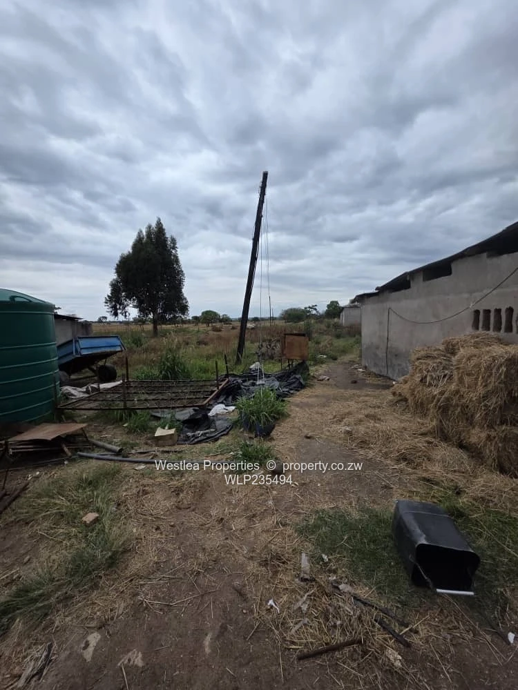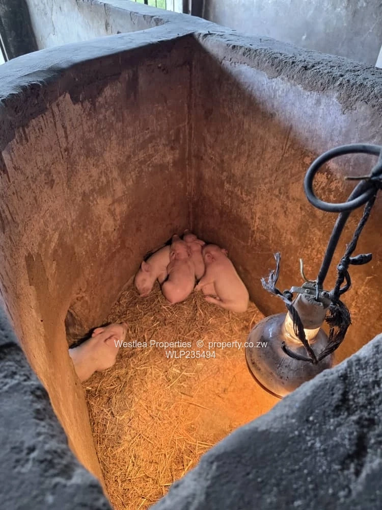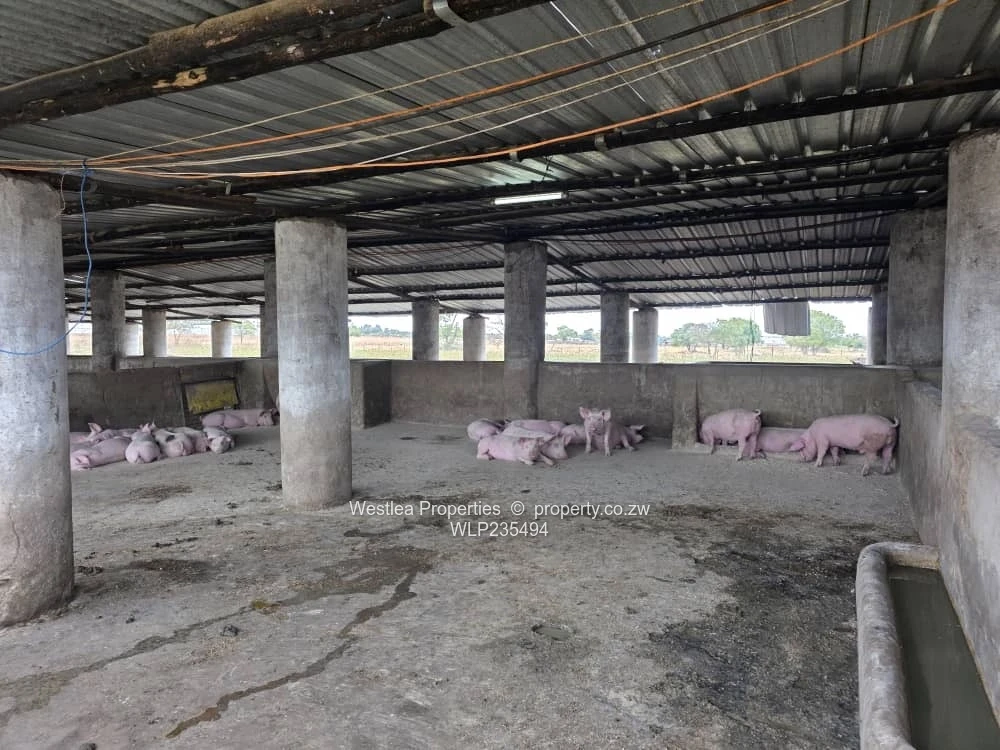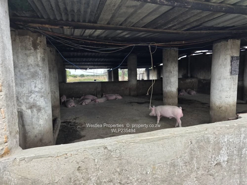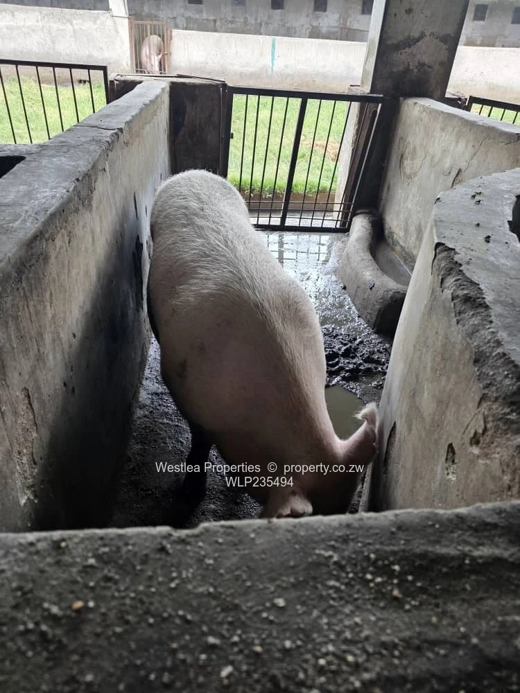 Available is a 20 ha plot in Ruwa ,3 boreholes , pig styles that can accommodate over 400 breeding stock , fowl runs ,cattle and goat pens ,dip tank ,25kva transformer ,servants quarters ,small dam ,seasonal stream and a store room.