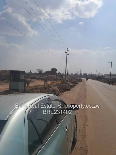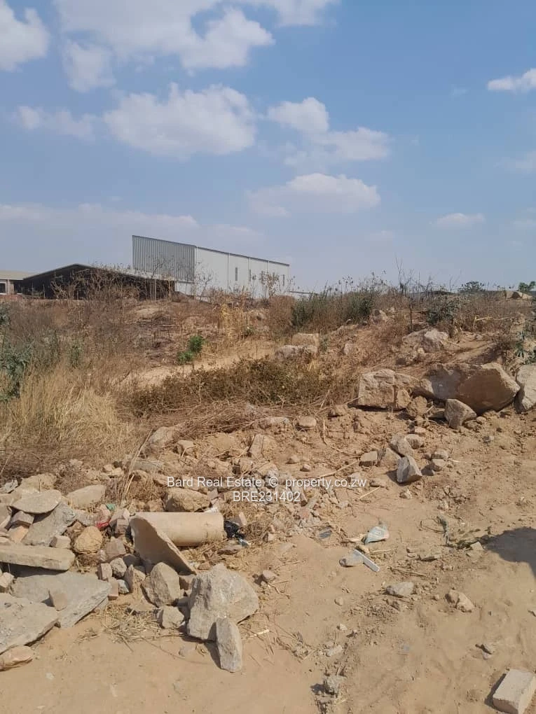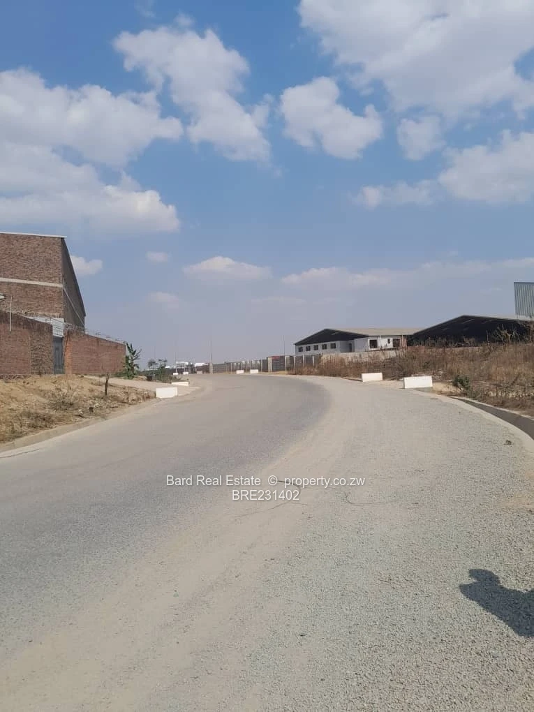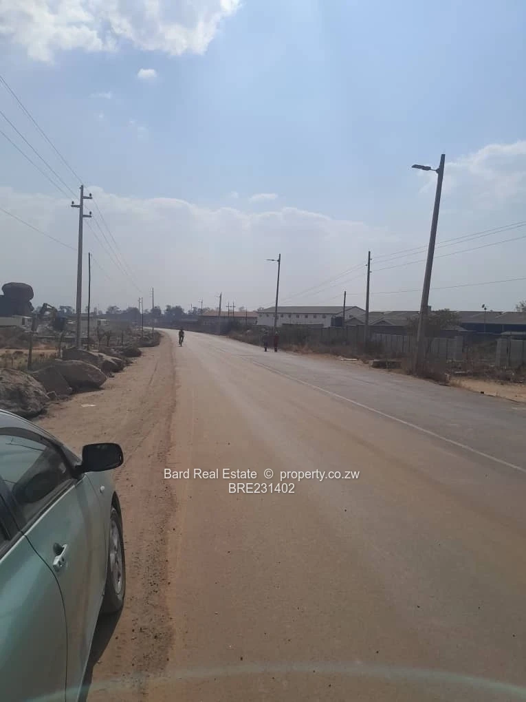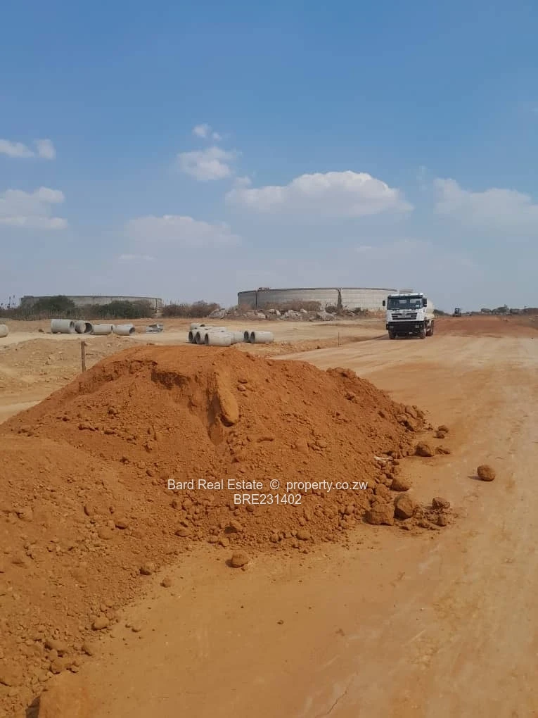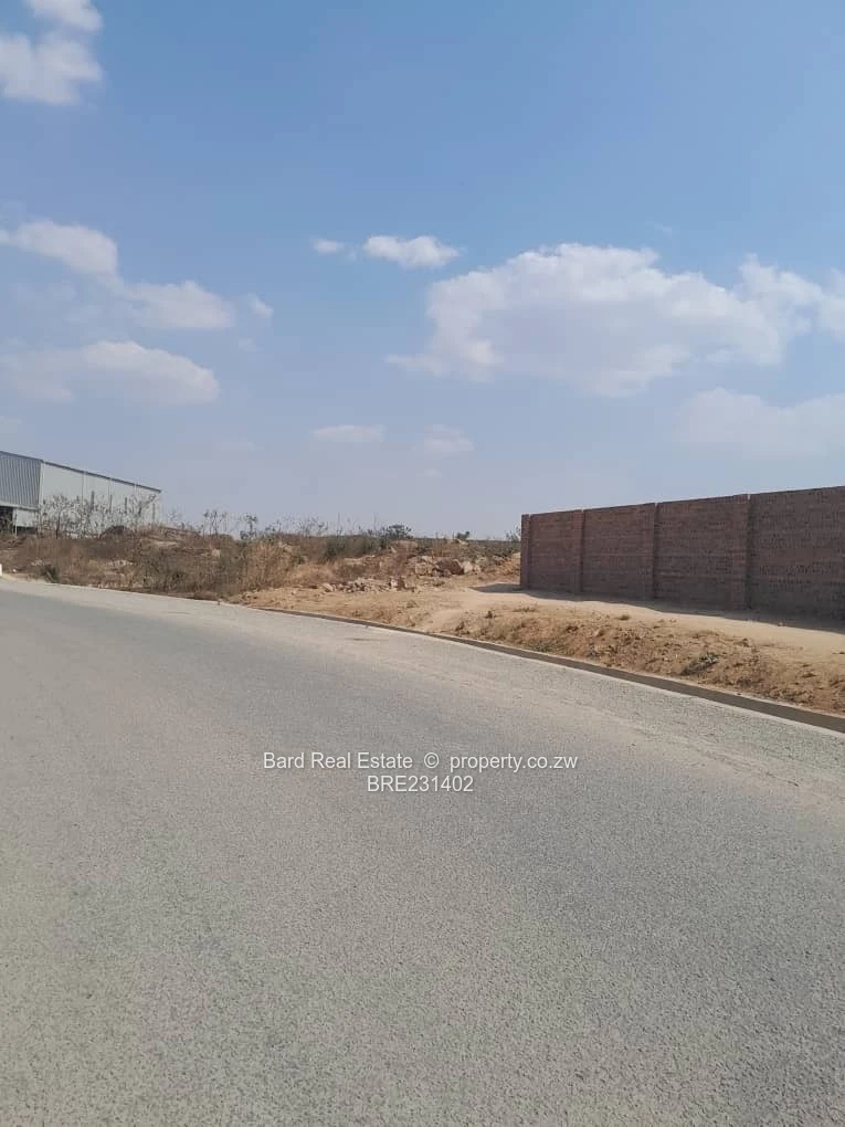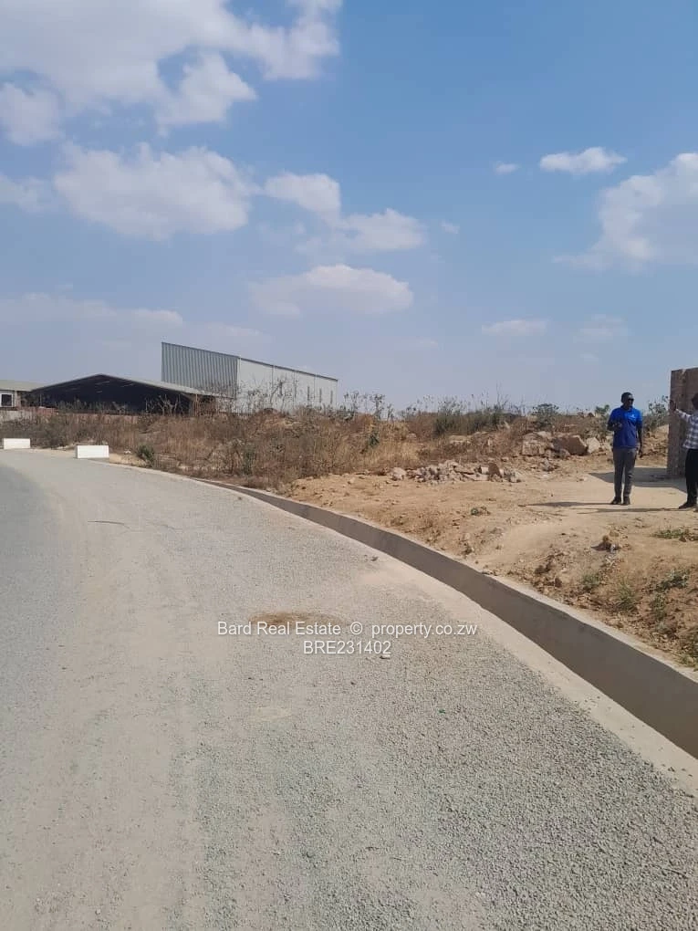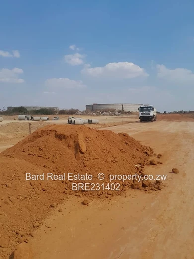 Prime commercial & industrial opportunity: 11,100 m² of land for sale in Sunway City, Harare East — a strategic, main-road frontage parcel ideal for warehouses, logistics yards, manufacturing or phased subdivision. The property enjoys direct access to a well-surfaced tarred road with street lighting, visible concrete kerbing and drainage works, and overhead power lines already in place, making services connection straightforward. Municipal water is available to the area and neighbouring industrial units and large storage tanks are visible from the site, confirming the estate’s established industrial character.