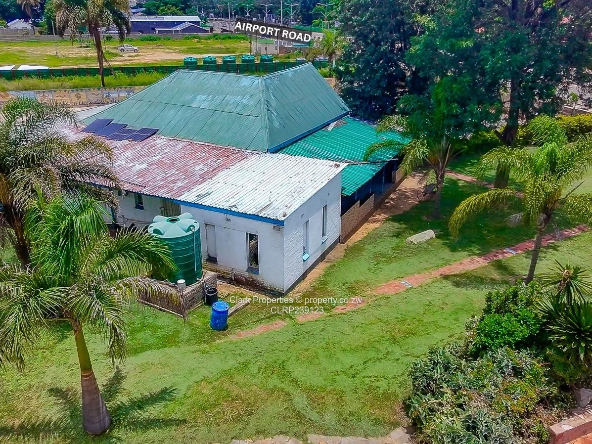 Clark Properties proudly presents this Airport Road frontage prime commercial property in Hatfieldan exceptional investment opportunity ideally positioned for international investors and developers. Sitting on a generous 5,106-square-meter, fully walled plot with dual gated entrances, this strategically located property offers outstanding visibility and easy access, just minutes from the airport. The main house features a spacious bar, office, verandah, and dedicated gents' and ladies' toilets. Additional amenities include outside restrooms, a disused swimming pool, municipal water supply, staff quarters, and a double lock-up garage. Whether you're looking to establish a boutique restaurant or an international office hub, this versatile property combines location, space, and potential in one of Harares most sought-after corridors. Contact us now to book a private viewing.