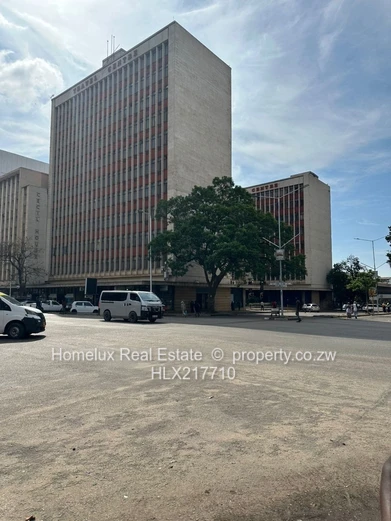 Located in the heart of Harare’s Central Business District, directly opposite Meikles Hotel and within close proximity to Eastgate Mall and Eastgate Market, this substantial commercial building is now available for sale. The property spans 2,132 square metres and features a ten-storey north wing, a seven-storey south wing, and a central triple-storey section connecting the two.