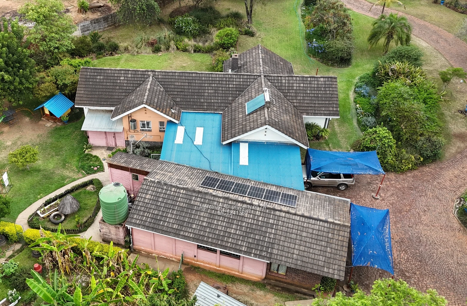 Corner stand on Enterprise Road with house comprising 3 bedrooms, lounge & separate dining room, 2 bathrooms, fitted kitchen with solar geyser plus outbuildings including guest wing with ablutions and kitchen, 2 storerooms & workshop, good borehole, one acre, walled with electric gate