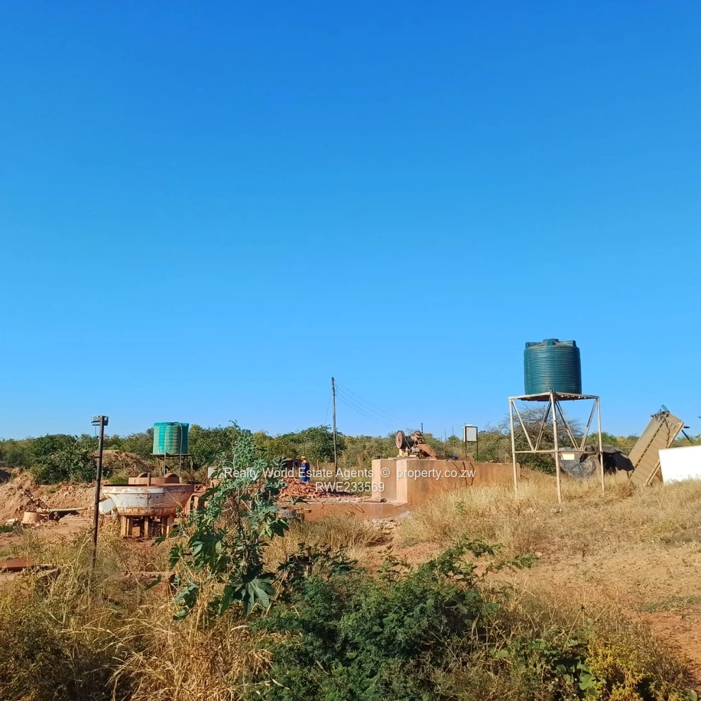 A mining claim with nine (9) ground tanks for purification processes with capacity of forty (40) and thirty (30) tons, two (2) clarifiers, sump, carbon box, foundation platforms for millers. Other improvements include a non-functioning borehole, tuck-shop and a staff quarters consisting of five (5) rooms. ZESA connection is available. We were given limited access and information.