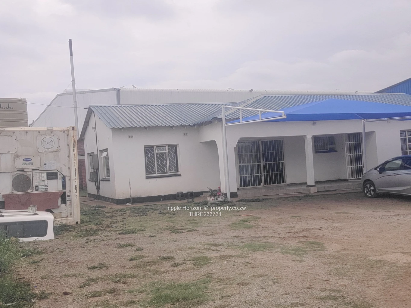 Office block and warehouse. Walled and gated.