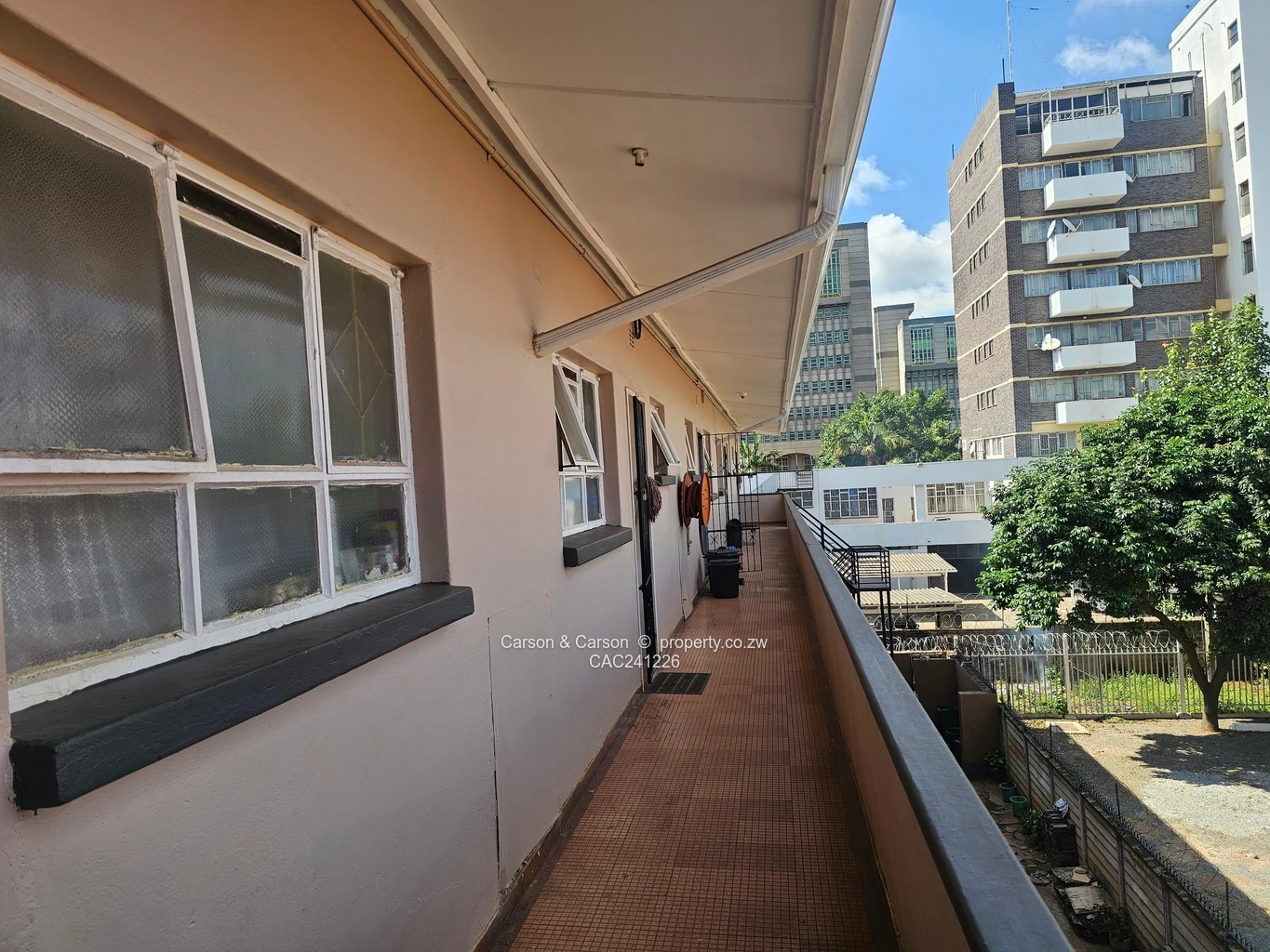 Spacious and bright 1-bedroom, 1-bath flat in the heart of Avenues, Harare CBD — perfect for a single professional, couple or investor. As seen in the photos, the apartment opens into a comfortable lounge with large front windows and soft curtains, a decorative chandelier and enough space for living and a small dining area. The compact fitted kitchen features white cabinetry, tiled surfaces and practical storage. The bathroom includes a pedestal basin, toilet and a full bathtub; a separate utility corner houses a washing machine and an instant water heater for reliable hot water. The bedroom offers built-in wardrobes and good natural light. Secure block with external walkways, iron railings and gated perimeter, plus direct street access with tree-lined views of the neighbourhood. Neutral tiled floors throughout make upkeep easy, and the unit is ready to move into with scope for cosmetic updates to personalise. Exceptional central location — minutes from banks, shops, restaurants and offices in the CBD. Arrange a viewing today to experience this convenient Avenues flat in person.