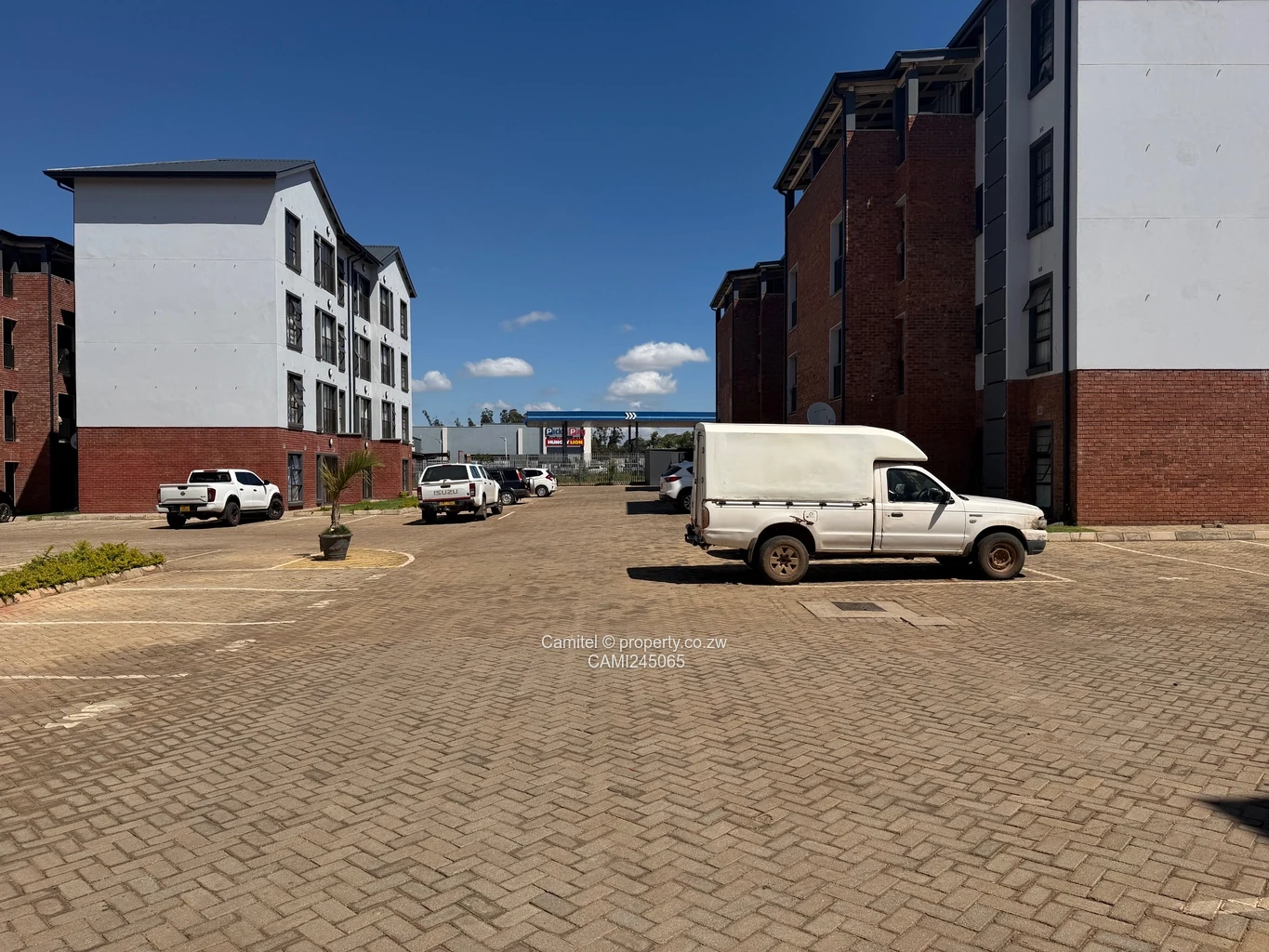 Spacious 2-bedroom, 1-bath flat (85 m²) in the well-maintained Aspindale Park complex, Harare West — ideal for first-time buyers or investors. The apartment is set on a generous 2,000 m² property and benefits from reliable water via a communal borehole, reducing dependence on municipal supply. As seen in the photos, the development consists of modern low-rise blocks with a red-brick base and crisp white rendered upper levels, arranged around a wide, paved courtyard with ample parking. The secure complex offers neat landscaping and clean, well-kept walkways. Excellent convenience: a retail strip with shops and a pharmacy is visible within easy walking distance, making daily errands simple. Bright interiors with large windows capture plenty of natural light; practical layout provides comfortable living and good rental appeal. Contact us to arrange a viewing and discover this move-in ready opportunity in Aspindale Park.