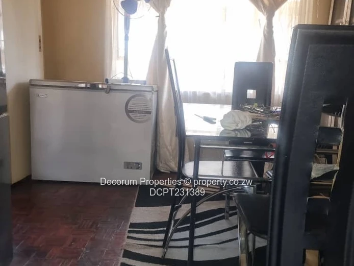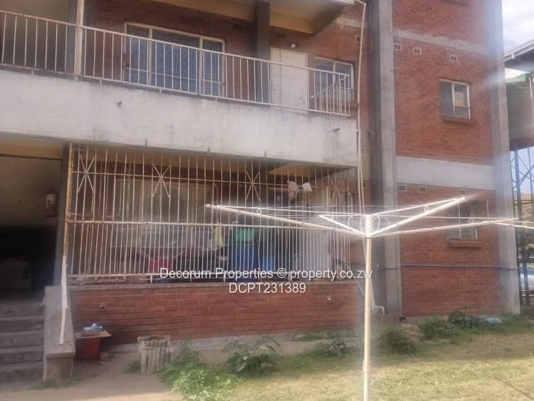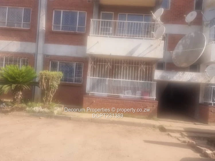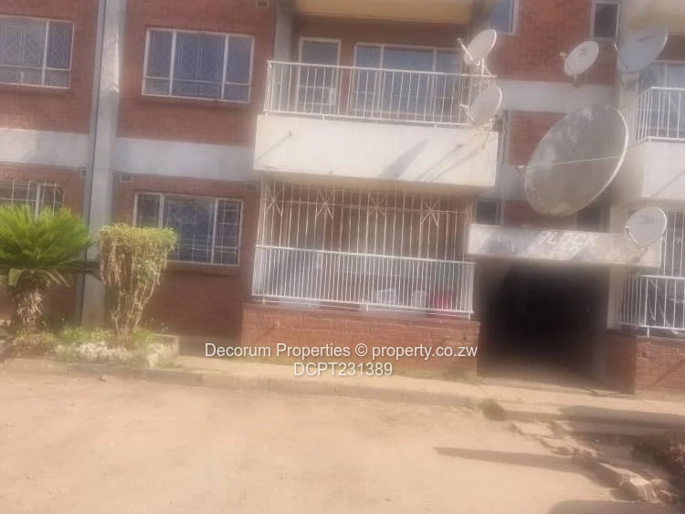 Outside you’ll find a communal lawn and clothesline, paved parking bays and carport areas, clear evidence of satellite TV connections on the building, and a walled, access-controlled compound providing peace of mind. Essential services are in place: municipal water, a working sewer system, reliable ZESA supply and internet connectivity available — all convenient for everyday living. The block is well-positioned within Eastlea, close to local amenities and transport routes.