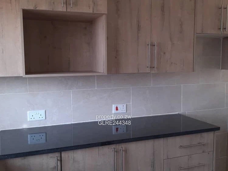 Beautiful three-bedroom, two-bath apartment in Marlborough, Harare West — ideal for families or investors. Set on a 600 m² stand with a 450 m² building area, this modern unit features neutral finishes and glossy tiled floors that brighten every room. As shown in the photos: a light-filled living area with sliding glass doors opening onto a paved communal courtyard/parking area; a practical open-plan kitchen with quality fitted cupboards and breakfast counter; a long internal corridor leading to three bedrooms with built-in wardrobe space; and fully tiled bathrooms with pedestal basin and WC. Reliable borehole water supply adds peace of mind and lowers running costs. Well finished, low-maintenance and secure, this unit offers convenience and contemporary living in a sought-after Marlborough location. Arrange a viewing today — a great buy in Harare West.