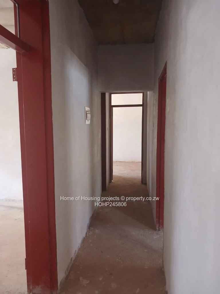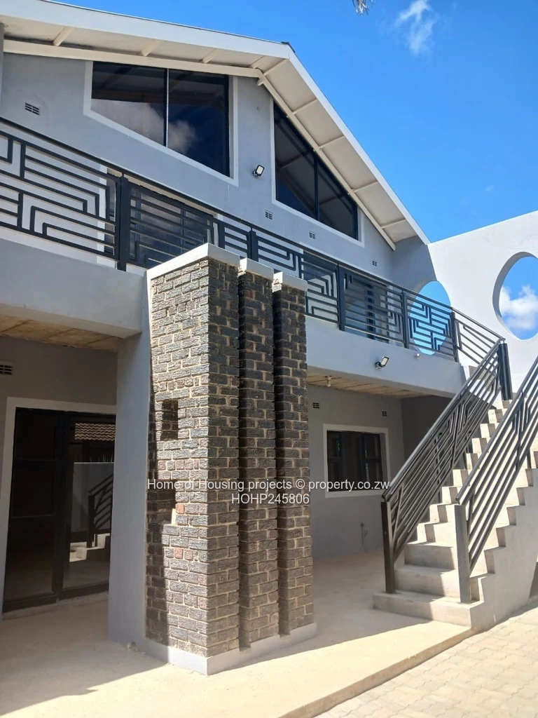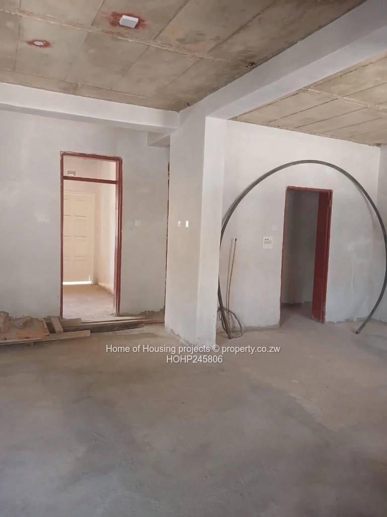 Modern 3-bedroom flat in Damofalls, Mashonaland East — ideal for owner-occupiers or investors. Set on a compact 135 m² parcel with main road frontage, this two-storey block offers excellent visibility and easy access. The exterior presents a contemporary rendered and brick façade with a secure metal gate, paved forecourt for parking and an external staircase leading to a generous verandah/entertainment balcony with sturdy railings (see photos). Interiors are shown at finishing stage with plastered walls, window frames and plumbing in place — ready for final fittings; the layout provides an open-plan living area, en-suite provision and room to personalise tiled finishes. Important services include a connected sewer system, reliable ZESA supply, internet ready cabling and paved common areas. Excellent opportunity to finish to your taste and move into a bright, well-located flat with outdoor entertaining space and practical urban amenities. Title deeds are also available........Viewing by appointment.