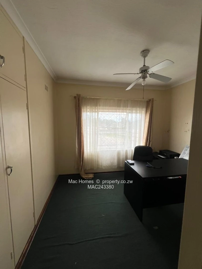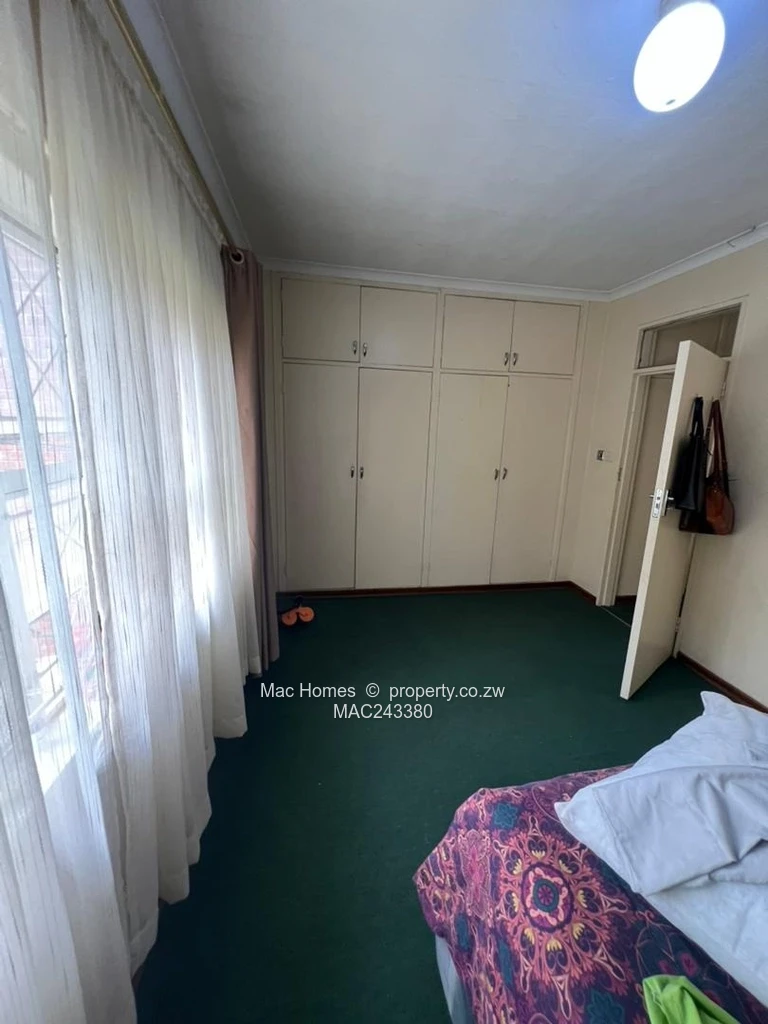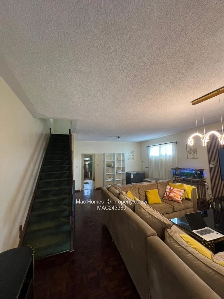 Charming 3-bedroom, 2-bathroom home in Avonlea, Harare West — a spacious 300 m² building on a 500 m² stand, ideal for family living or high-yield rental. The red-brick façade and gated paved drive (as pictured) open to a neat front lawn and covered parking area; a clothesline and small garden are visible for easy outdoor living. Inside, an airy open-plan lounge and dining area (photo shows a large sectional, fish tank and abundant natural light) flows from the entrance and leads to a carpeted staircase up to the sleeping quarters. Bedrooms are generous with built-in cupboards and ceiling fans (see bedroom image), and the bathrooms are tiled and practical (narrow guest bath pictured with basin and WC). Practical features include a reliable borehole, offering dependable water supply and lower utility costs. This solid, well-proportioned home offers character and scope for cosmetic updates — move in as is or remodel to add value. Located in a convenient Harare West neighbourhood, this property is a rare find for buyers seeking space, security and water independence. Arrange a viewing today to appreciate the layout and potential.