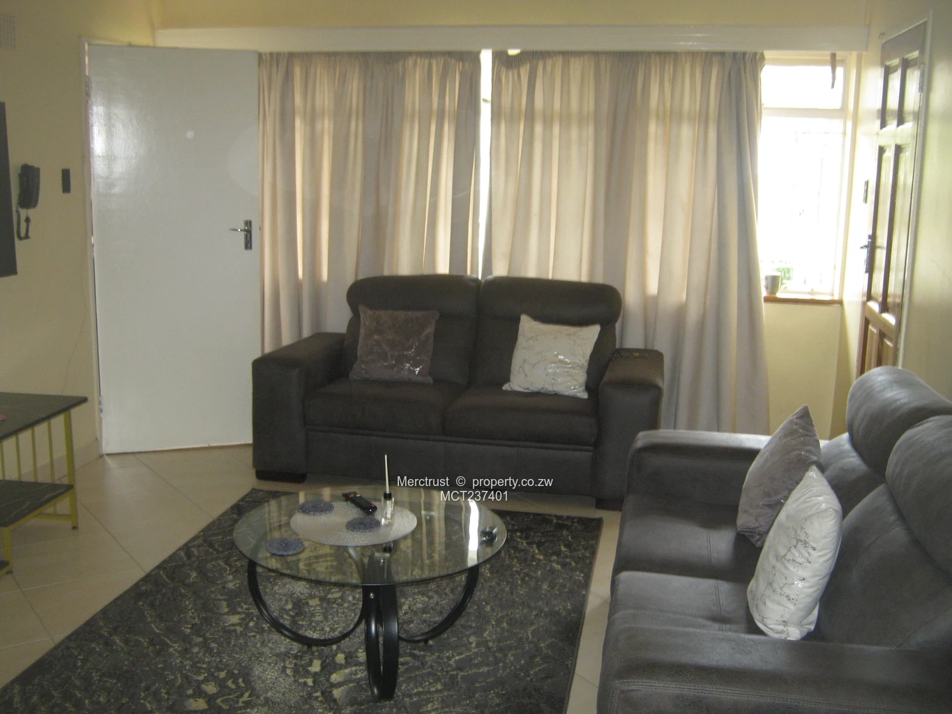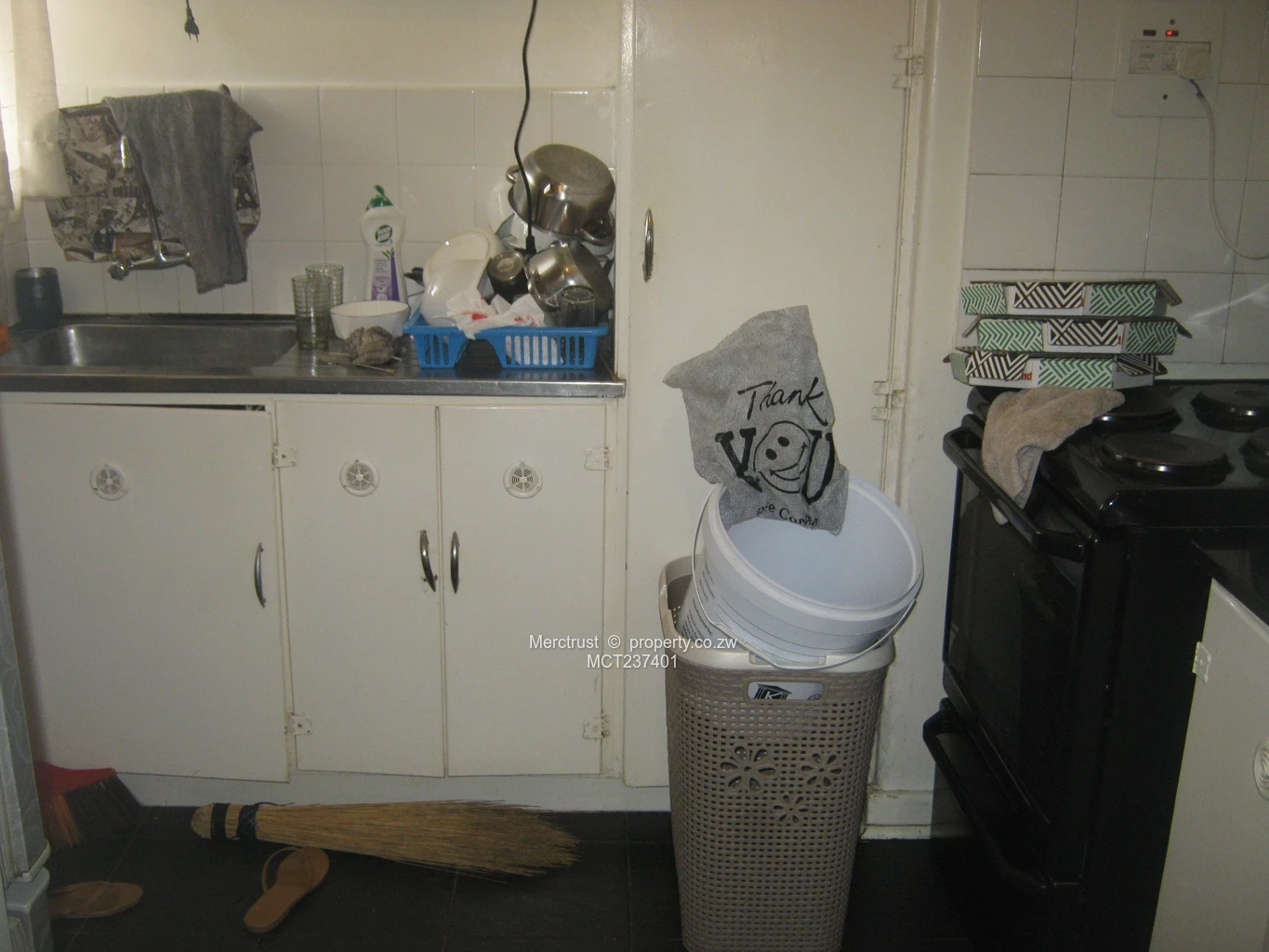 One bedroom with bathroom en suite, combined lounge/dining room/study, enclosed veranda, fitted kitchen, 150 litre solar geyser, good Zesa & municipal water, 1000 litre tank, off-road parking bay