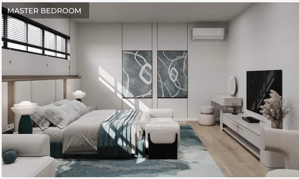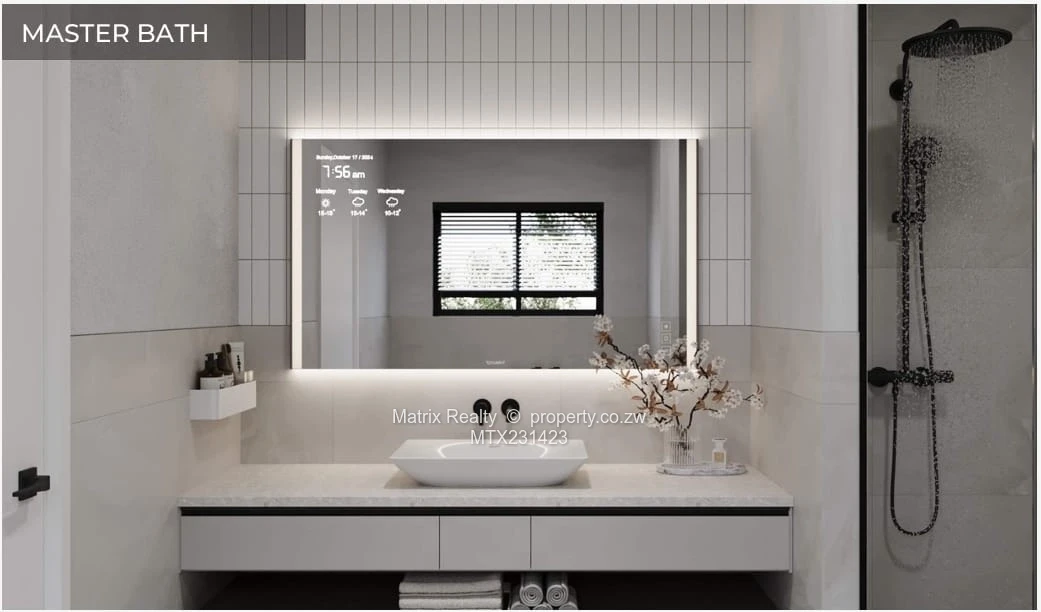 Solar inverter system, borehole water, high-end finishes, modern architectural details, 24hour security.