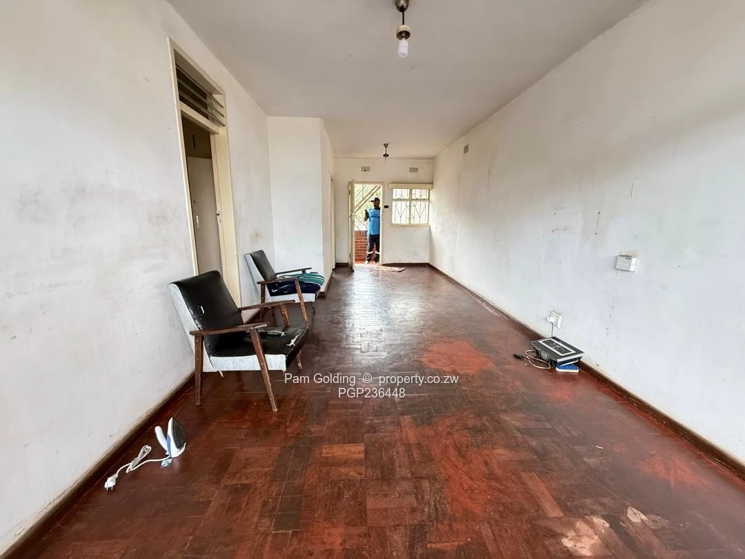 A one-bedroom flat is available for sale in Bulawayo, ideally located in a prime area at the corner of 4th Avenue and Samuel Parirenyatwa. The property features a bedroom with an en-suite bathroom, an open-plan lounge and dining area, and a compact kitchen.