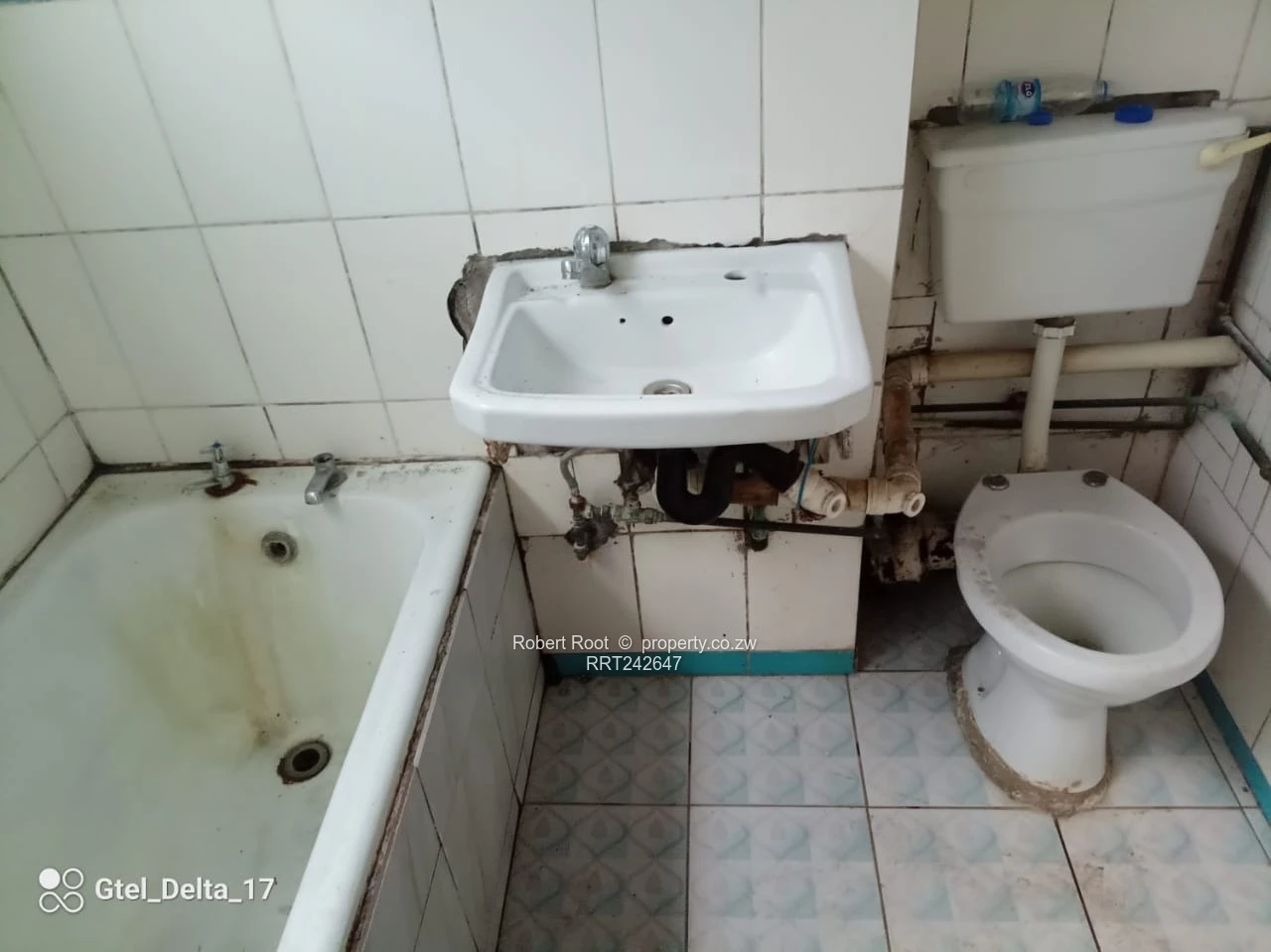 Compact 1-bedroom apartment in the heart of Harare CBD — an affordable, renovation-ready unit ideal for a single professional, student or investor. The bedroom is bright with a large metal-framed window that brings in natural light and sits on easy-to-clean tiled floors. The fitted kitchenette includes a stainless steel sink, wall shelving and base cupboards, offering a practical food-prep area that can be upgraded to your taste. The bathroom is fully tiled with a bathtub, basin, toilet and a wall-mounted electric geyser already installed. Municipal water and good ZESA supply are in place, and the building is paved for convenient access. Photos show solid plumbing and tiling throughout, exposed pipework and cabinetry that would respond well to a targeted cosmetic refresh — an opportunity to add value quickly. Situated in Harare City Centre, you’re walking distance to shops, transport and services. Ideal as a low-maintenance rental or a starter home — contact us to arrange a viewing options.