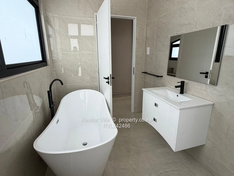 Modern 4-bedroom, 3-bathroom flat/apartment in Monavale, Harare West — an exceptional new development on a 350 m² stand with a 220 m² building footprint. As seen in the photos, the units are being finished to a contemporary specification with clean, geometric facades, generous floor-to-ceiling glazing, private terraces and double-volume elements that flood interiors with light. The scheme runs in neat rows behind a secure perimeter wall and offers private parking and garden space, ideal for family living and entertaining.
