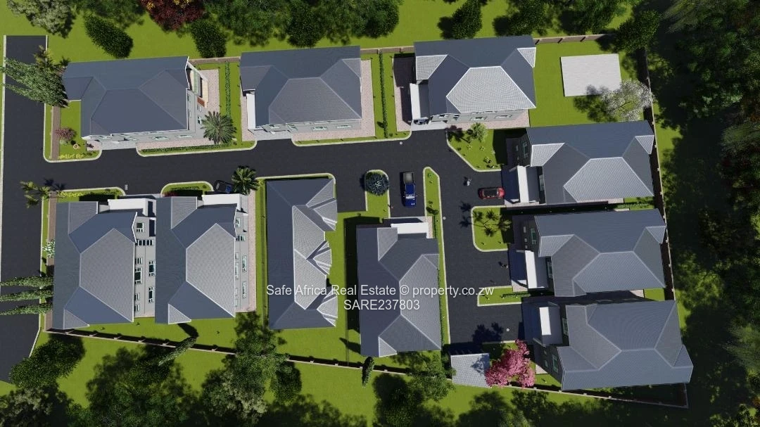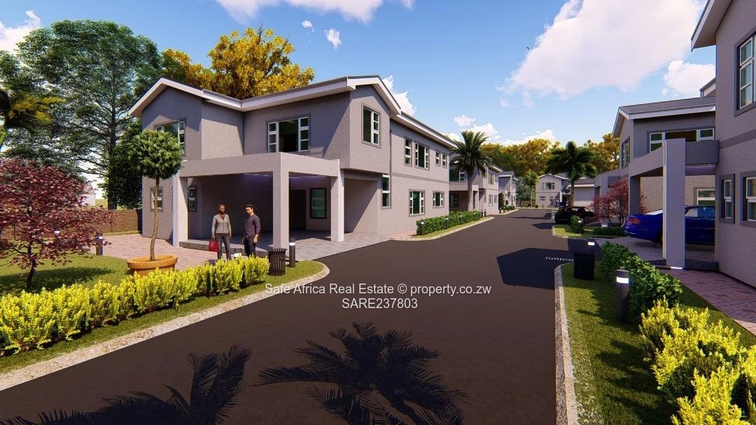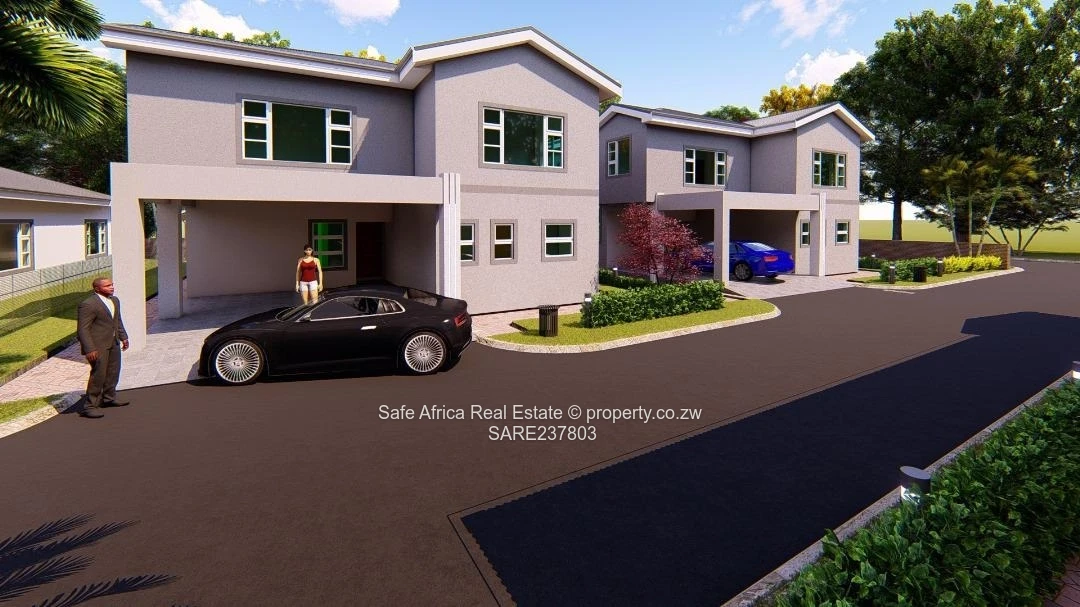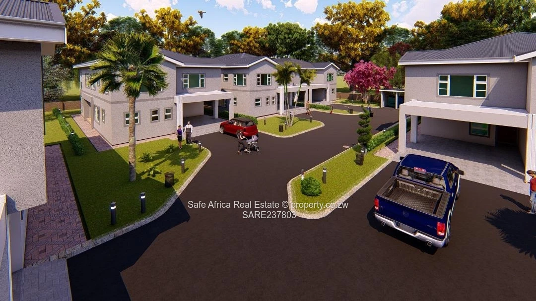 Beautifully designed 5-bedroom, 3-bathroom Clusters (300 m²) in a secure Greystone Park gated development, Harare North. As shown in the images, this modern two-storey unit sits within a walled complex with paved internal roads, landscaped islands and dedicated parking bays/carports right at your door. The thoughtful layout includes a main en suite, generous family bedrooms, plus a private study/office ideal for remote work. Interiors are bright with plentiful windows; the open-plan living and dining flow easily to a practical kitchen. The estate benefits from good ZESA supply and 24-hour security, creating a safe, comfortable environment for families or professionals. Communal landscaping and a tidy cul-de-sac arrangement (visible in the aerial view) deliver low-maintenance living and excellent curb appeal. Contact us to arrange a viewing and secure your place in this contemporary, well-appointed Harare North development.