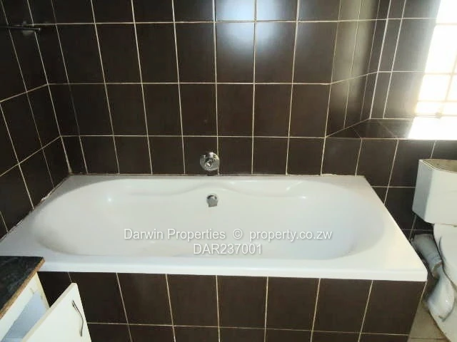 New on our portfolio is this 3-bedroom, 2-bathroom garden flat in Westgate, Harare West — ideal for a young family or investor. Set on a 400 m² stand with a comfortable 150 m² footprint, this home welcomes you into a bright, open-plan tiled lounge with a distinctive curved wall of glass doors and windows that flood the space with light and lead out to a covered verandah and private garden. The fitted kitchen features generous cupboards with a breakfast bar adjacent to the living area. The main bedroom includes an en suite with a bathtub and there is a separate shower in the guest bathroom; built-in wardrobes provide good storage. Practical extras include municipal water, a water tank for added water security, a sewer connection, a single lock-up garage and additional parking off the communal driveway. The flat is tiled throughout and offers a fireplace for cosy winter evenings. Well-positioned within a secure complex with mature greenery and a small outdoor patio. This property presents excellent potential for refurbishment or immediate rental income. Contact us to view and explore the upgrade possibilities on this attractive Westgate offering. Share Transfer.